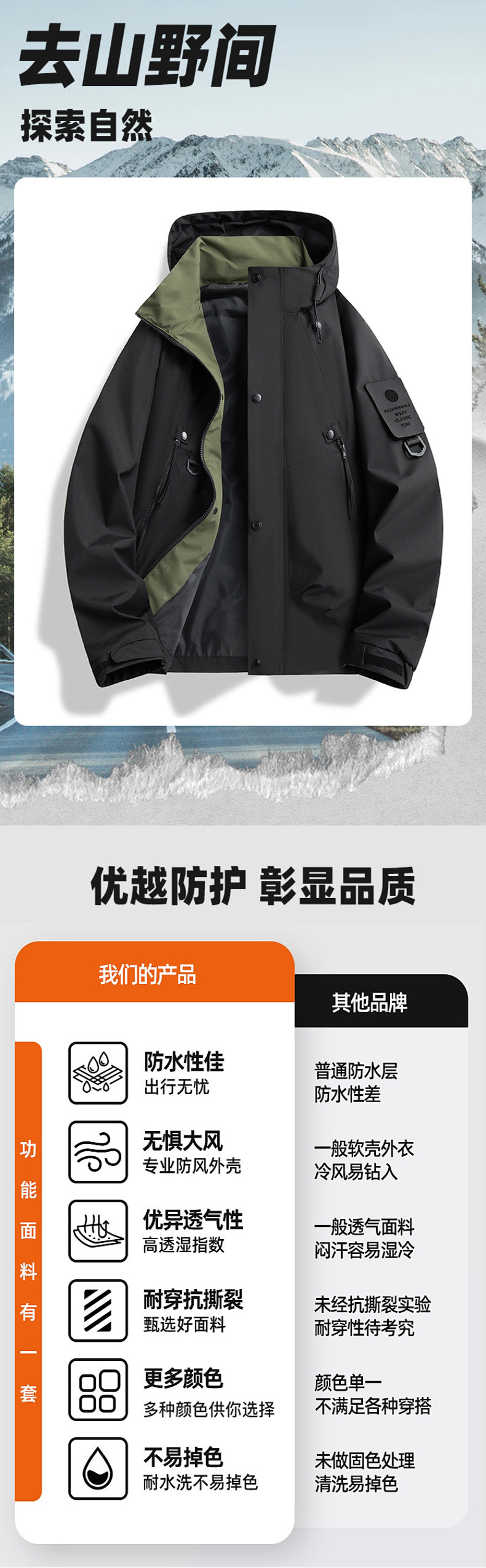 Новая ветрозащитная и водонепроницаемая хлопковая спортивная куртка для походов от пары, популярная на TikTok и Taobao.