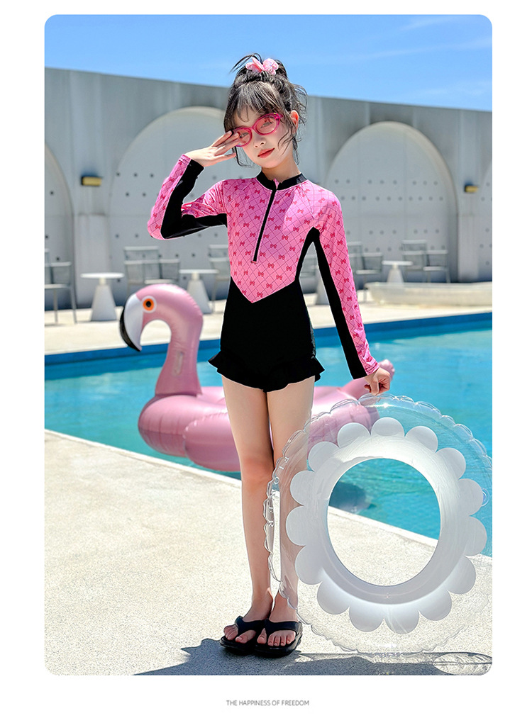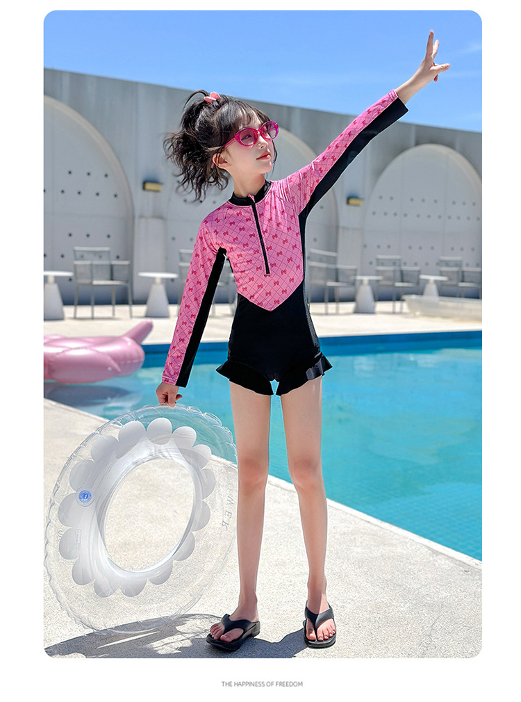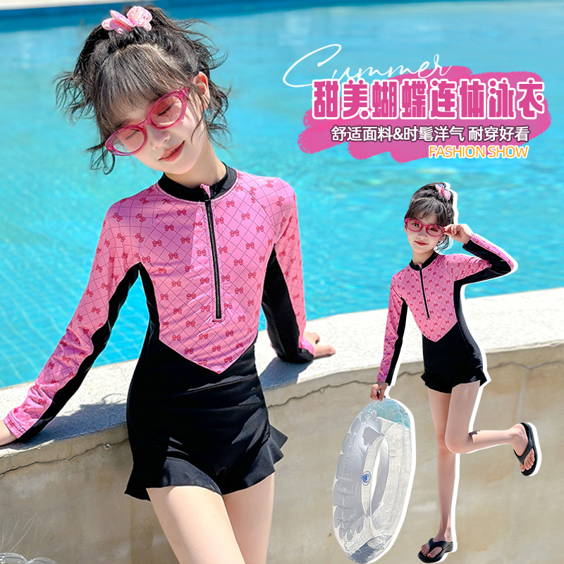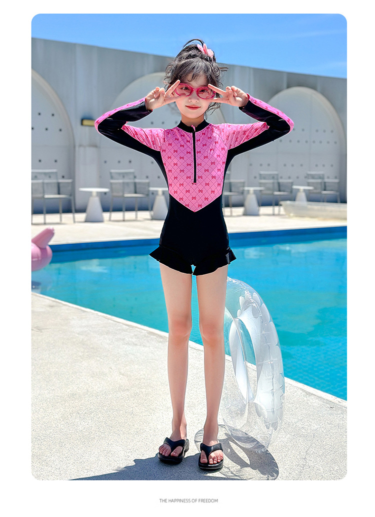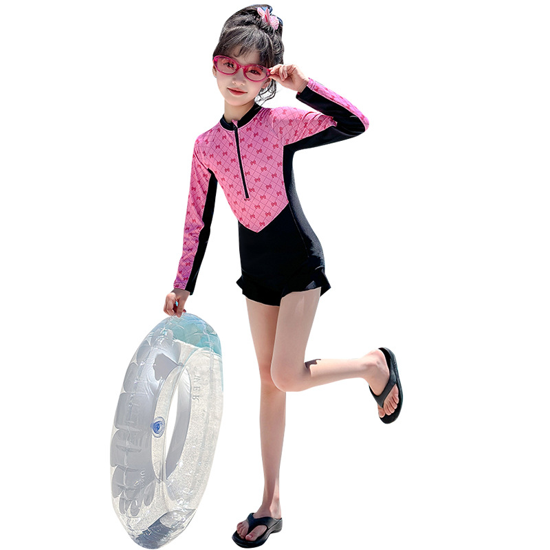 Новый купальник для девочек 2025 года, средний и большой детский солнцезащитный купальник с длинными рукавами, детский специальный купальник для девочек 10-12 лет 9