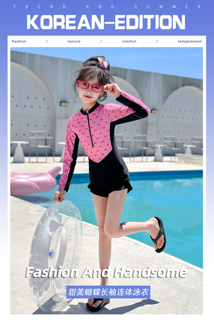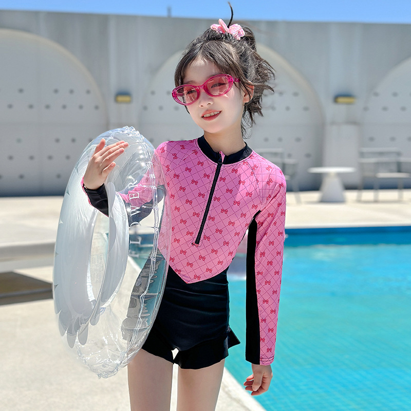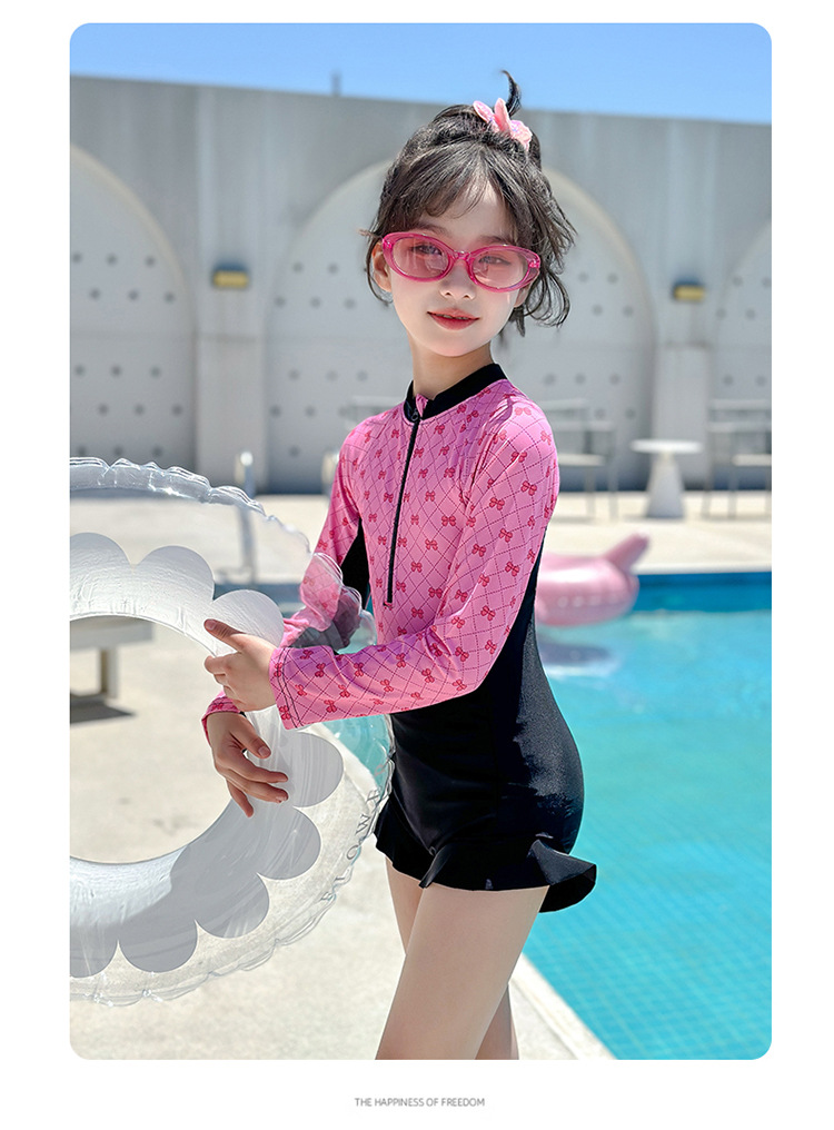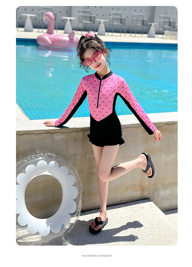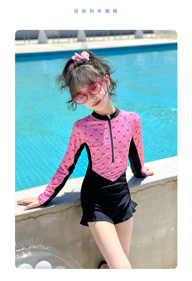 Новый купальник для девочек 2025 года, средний и большой детский солнцезащитный купальник с длинными рукавами, детский специальный купальник для девочек 10-12 лет 9