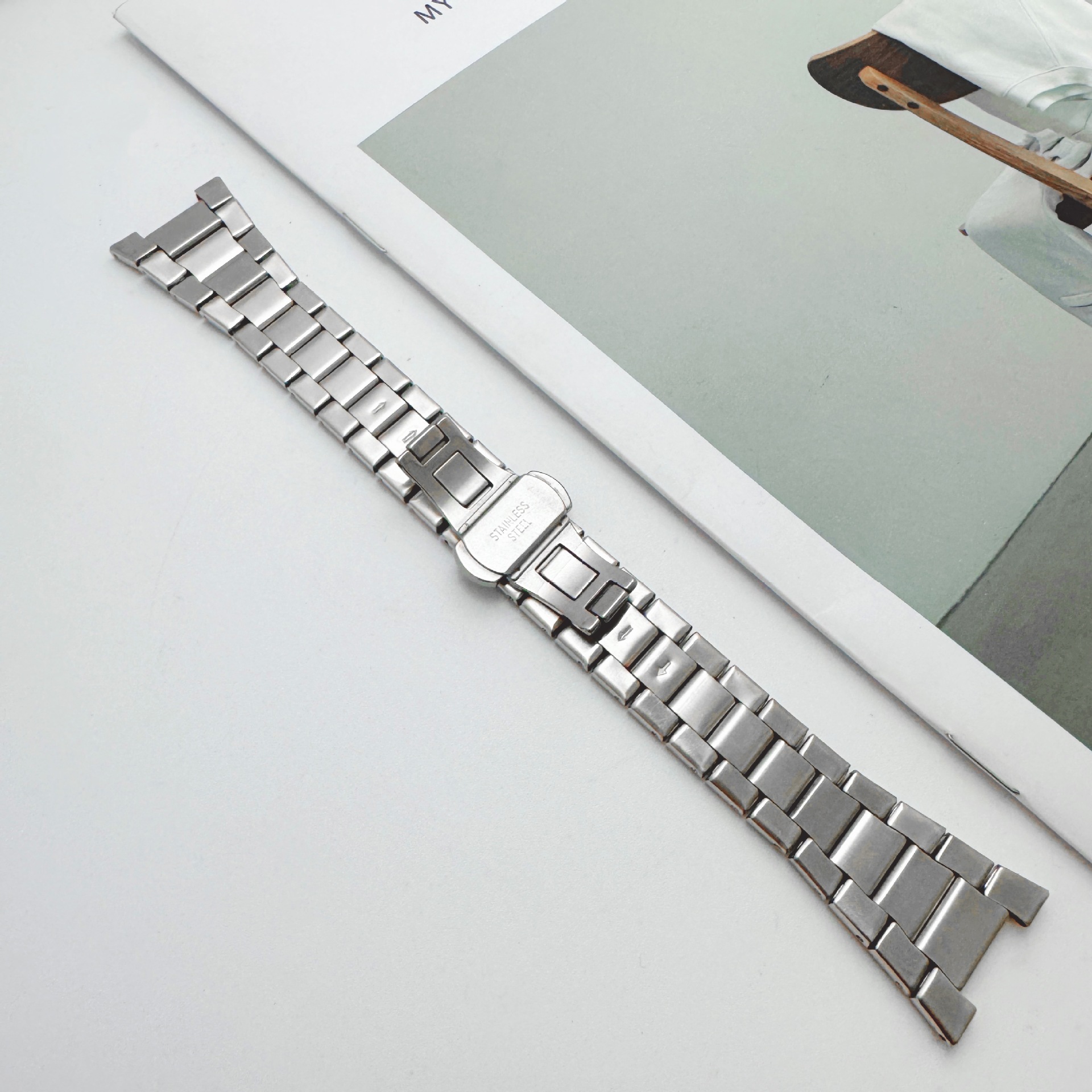 Прямые поставки с завода: новый ремешок для часов I-образной формы с обработанным краем, 16*25 мм, с полированной пескоструйной обработкой, универсальный ремешок из нержавеющей стали с застежкой-бабочкой.