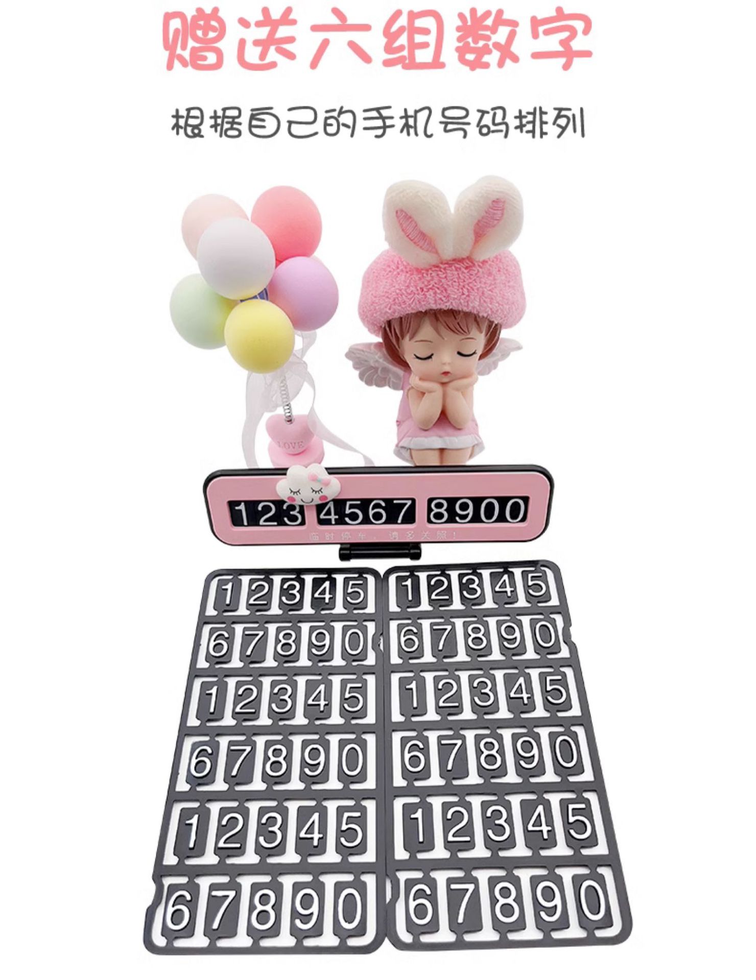 Полная коллекция милых украшений для автомобилей, временных парковочных номеров, декоративных принадлежностей, креативных мобильных телефонов.