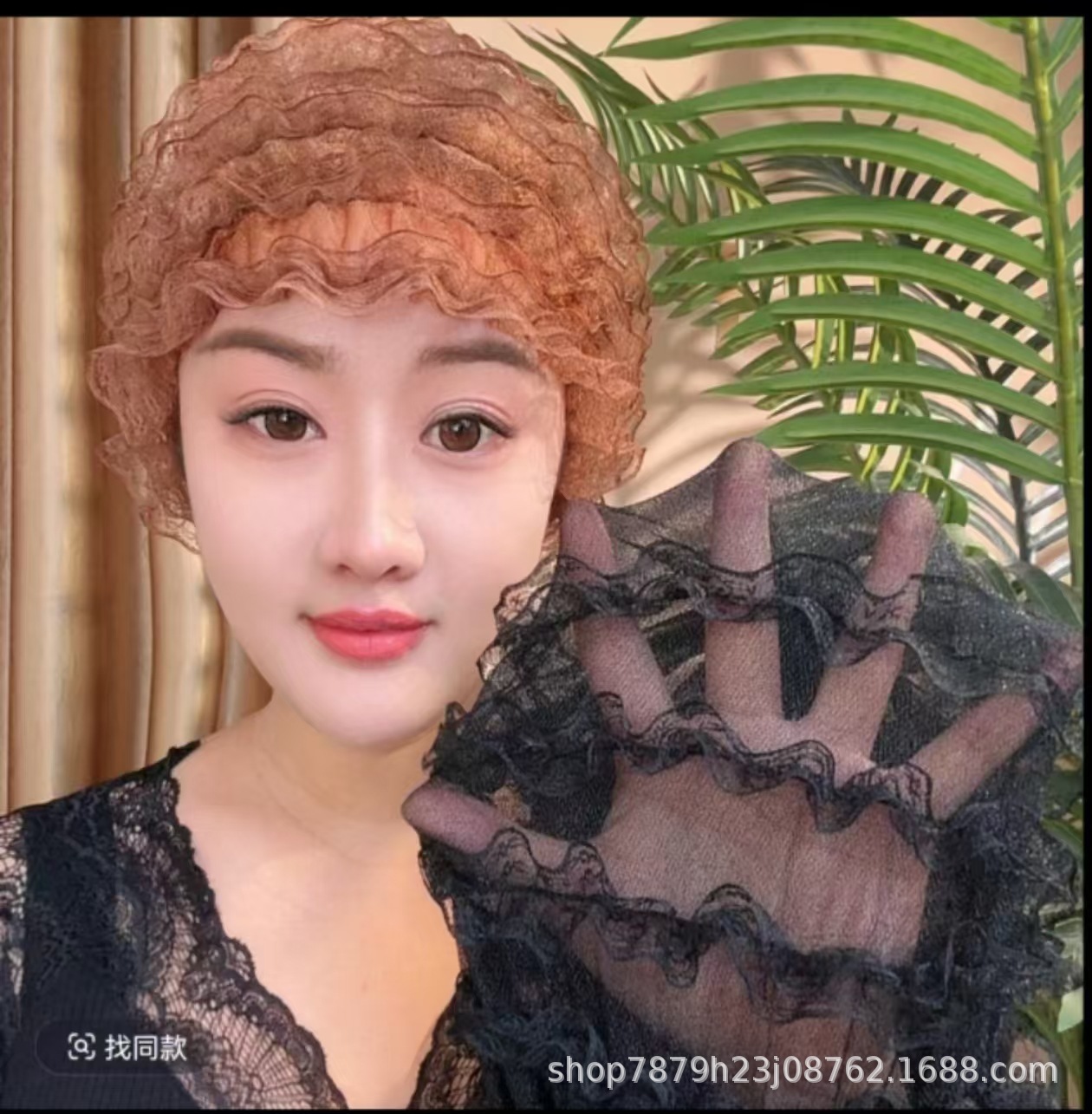 Шелковая сетка из ледяного шелка в том же стиле (эластичная) закрывает белые волосы, кружевная модная женская дышащая красивая шляпа