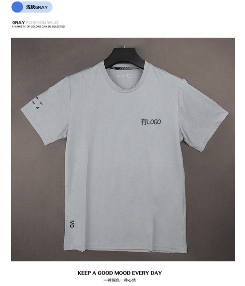 Летняя европейская и американская спортивная быстросохнущая футболка с короткими рукавами, мужская свободная эластичная футболка для фитнеса с круглым вырезом, повседневный топ из ледяного шелка большого размера