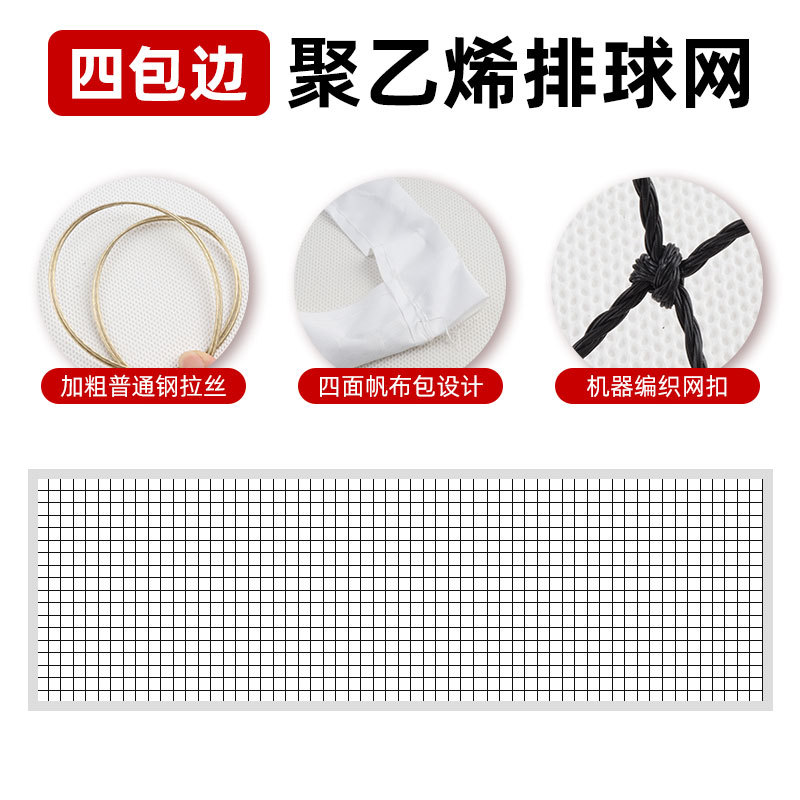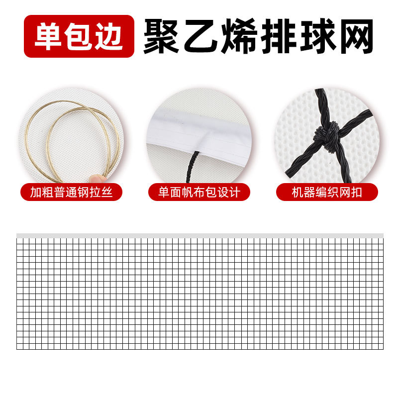 [Одинарная подшивка] Разделенная волейбольная сетка 1м*9,5м; [Четыре края] Разрезанная волейбольная сетка 1м*9,5м; [Одинарная подшивка] Волейбольная сетка без узлов 1м*9,5м; [Четыре края] Волейбольная сетка без узлов 1м*9,5м