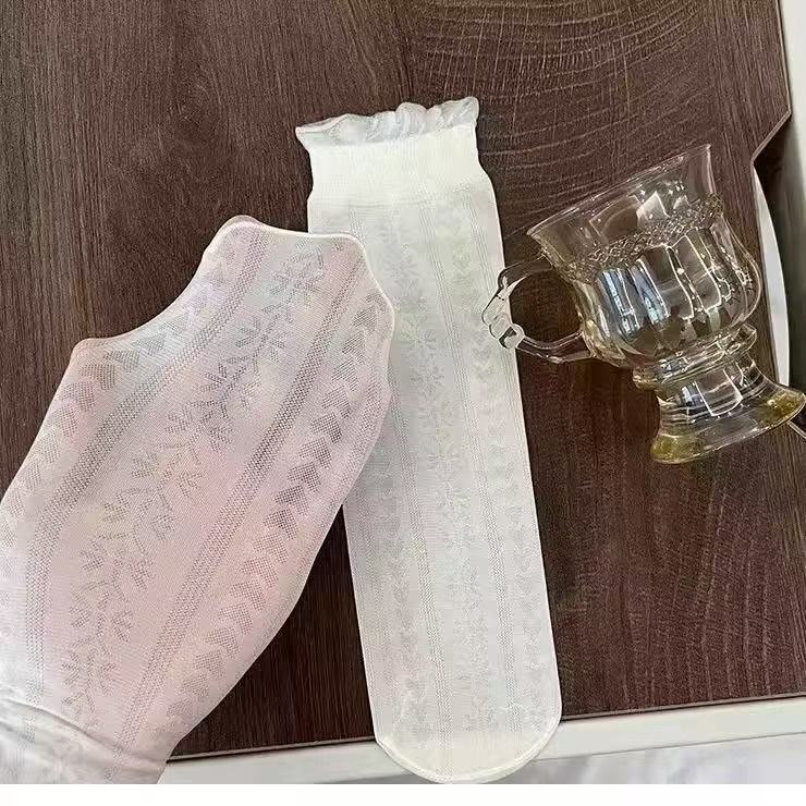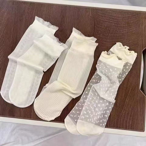Летние тонкие женские носки из ледяного шелка, носки принцессы Лолиты, милые кружевные чулки в горошек, летние чулки