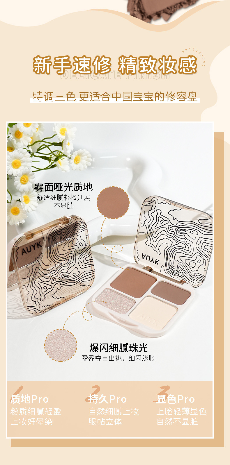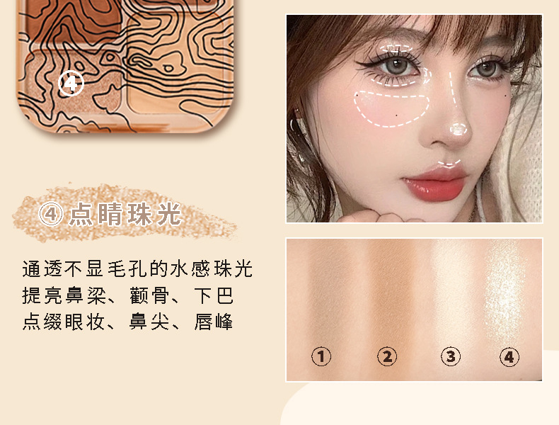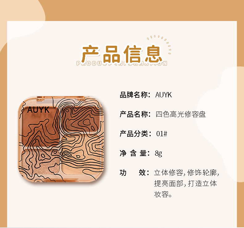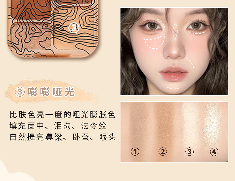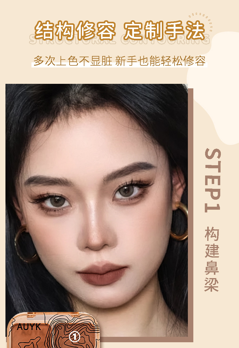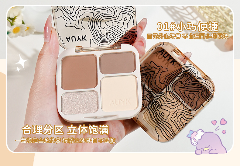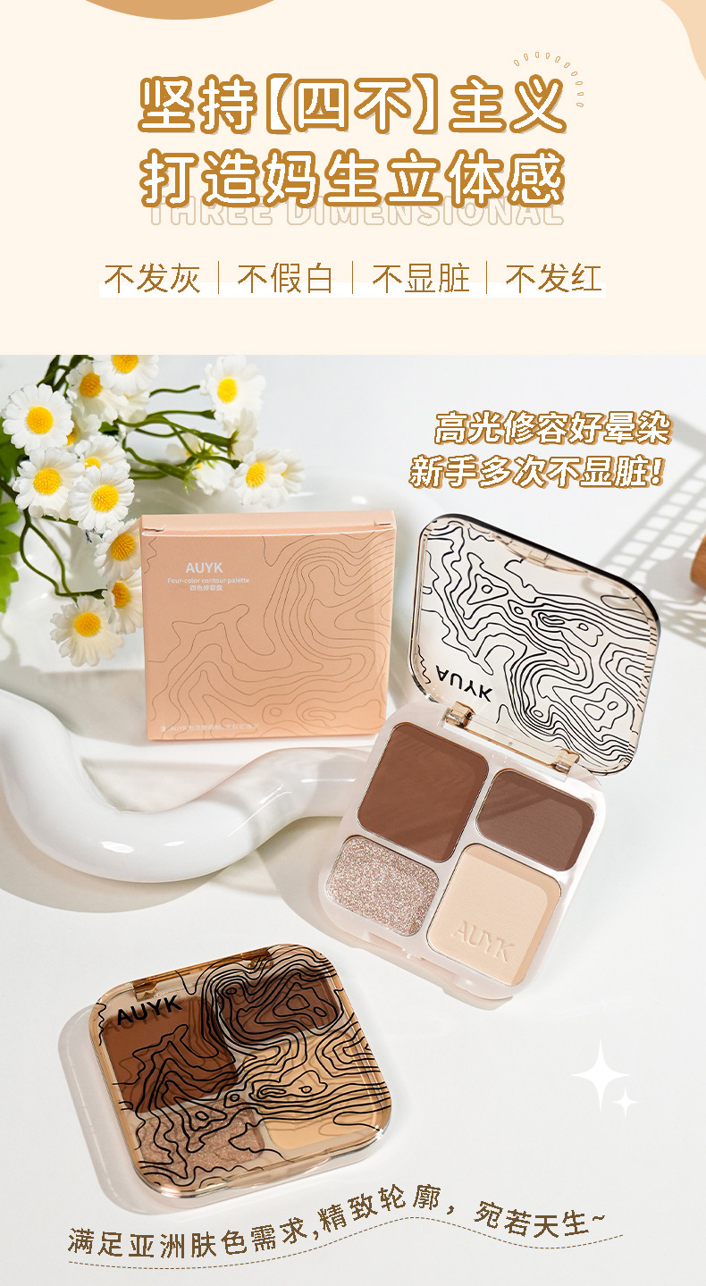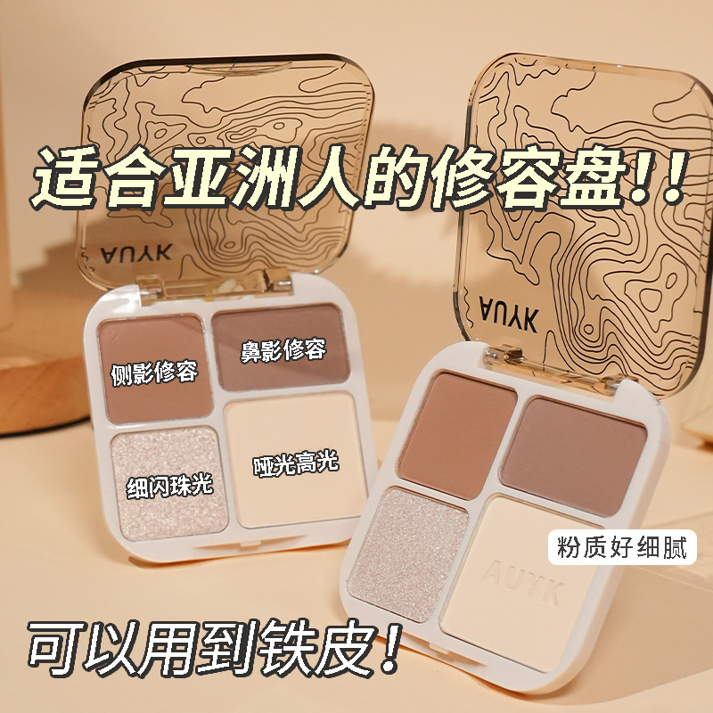 AUYK Highlight Contouring Palette Матовый осветляющий праймер с блестками Тени для носа Палитра для контуринга