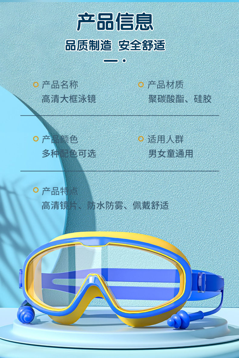 Детские очки для плавания, противотуманные, очки для плавания высокой четкости, очки для плавания для взрослых высокой четкости, удобные для глаз, силиконовые затычки для ушей с зажимом для носа, очки для плавания в большой оправе