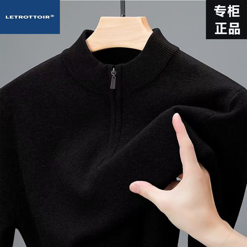 Трансграничный свитер с полугольфом для мужчин среднего возраста, осенне-зимний мужской однотонный свитер с половиной молнии, универсальный трикотажный топ