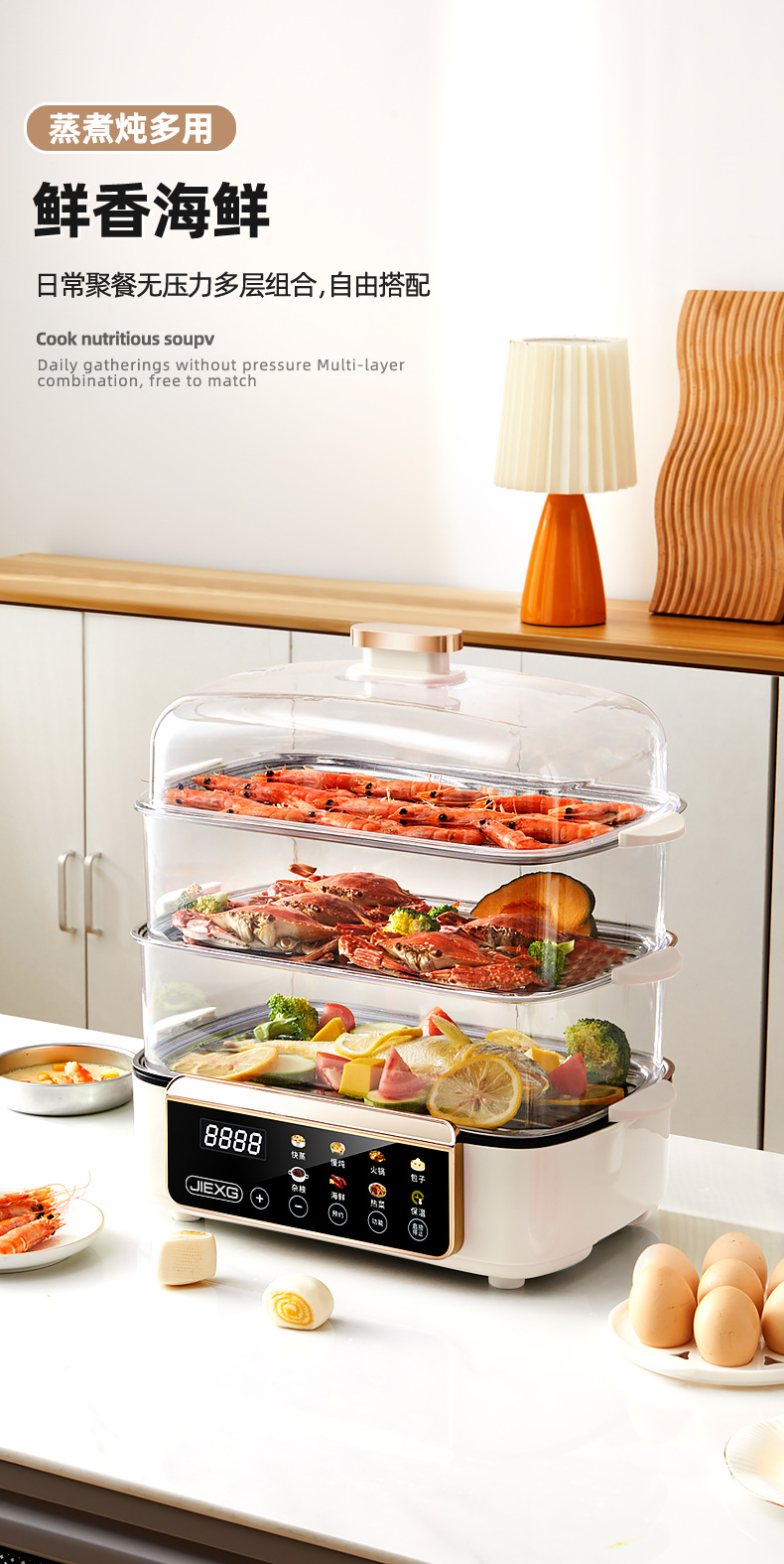 Немецкая электрическая пароварка JIEXG, бытовая трехслойная пароварка, многофункциональная пароварка большой емкости, универсальная машина для приготовления завтрака и приготовления пищи