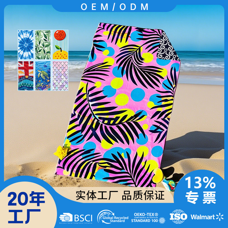Фабрика трансграничных пляжных полотенец из микрофибры с принтом для плавания, спорта и ванны, быстро впитывающих воду, с возможностью индивидуального заказа.