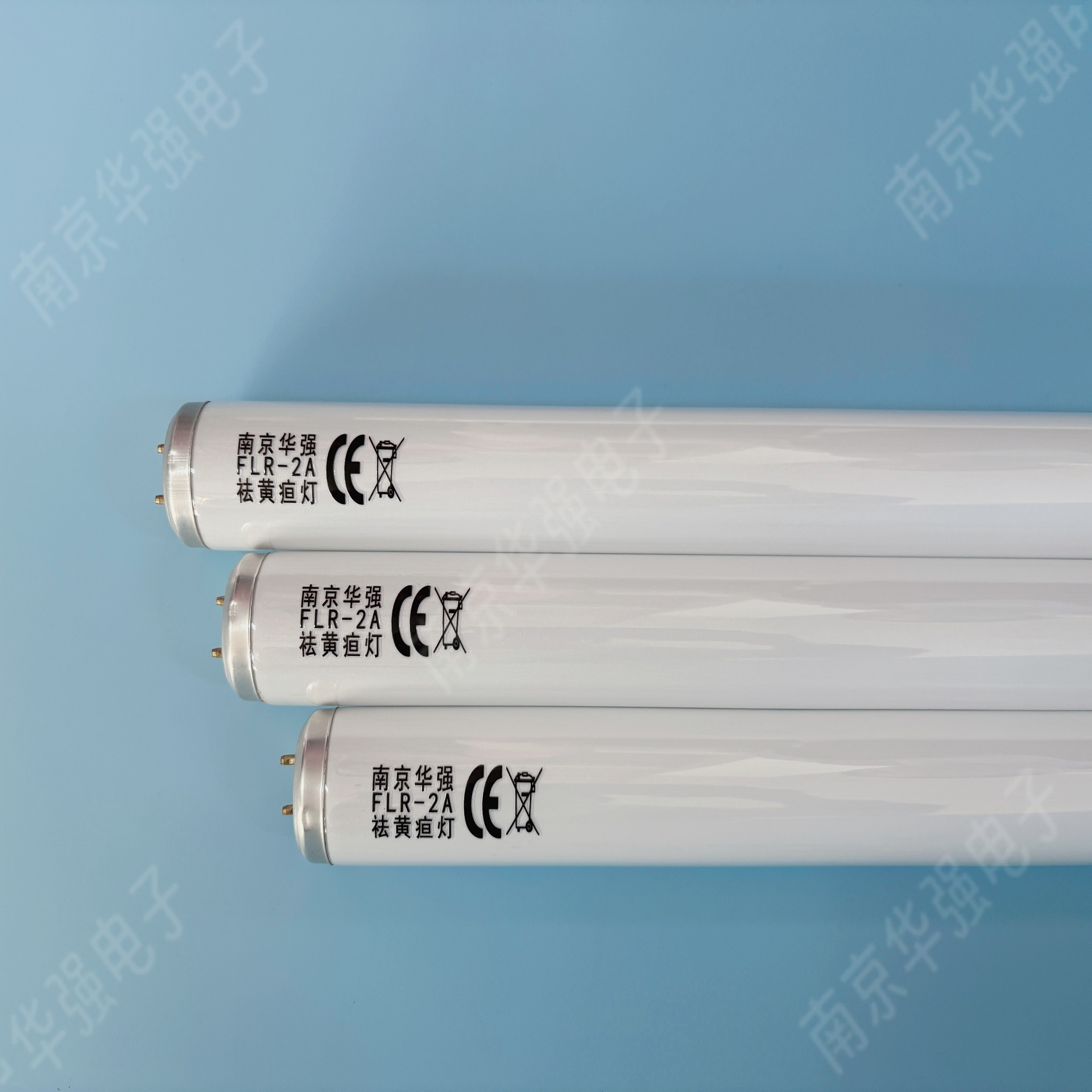 产品简介: 黄疸灯管也称蓝光灯管,属于低压荧光灯,采用进口三基色特殊荧光粉制造,可以发射出峰值为:450nm特定波长的蓝光,具有蓝光辐照度强、无紫外线、光衰小、长寿命等特点,黄疸灯管作为黄疸仪的配套光源,广泛应用于新生儿黄疸仪制造、婴儿培养箱制造等领域。 适用于宁波戴维、郑州迪生、北京巨龙三优、南京金陵温控、上海四菱等厂家生产的各规格新生儿黄疸仪及婴儿培养箱。 科普知识: 黄疸在病学上称为高胆红素血症。因新生儿每日生成量是成年人的2倍,而排泄胆红素的能力仅为成年人的10%~20%,因此易出现黄疸。为了宝宝的健康,理想、安全、普及的方式是采用蓝光照射的物理方法,利用特殊波长的蓝光,使胆红素变成无毒性异构物排出体外,促进其代谢而使黄疸指数下降。胆红素能吸收光,在光和氧的作用下,胆溶性的胆红素氧化成为一种水溶性的产物,能从尿液排出体外,从而降低血清非结合胆红素浓度的目的。