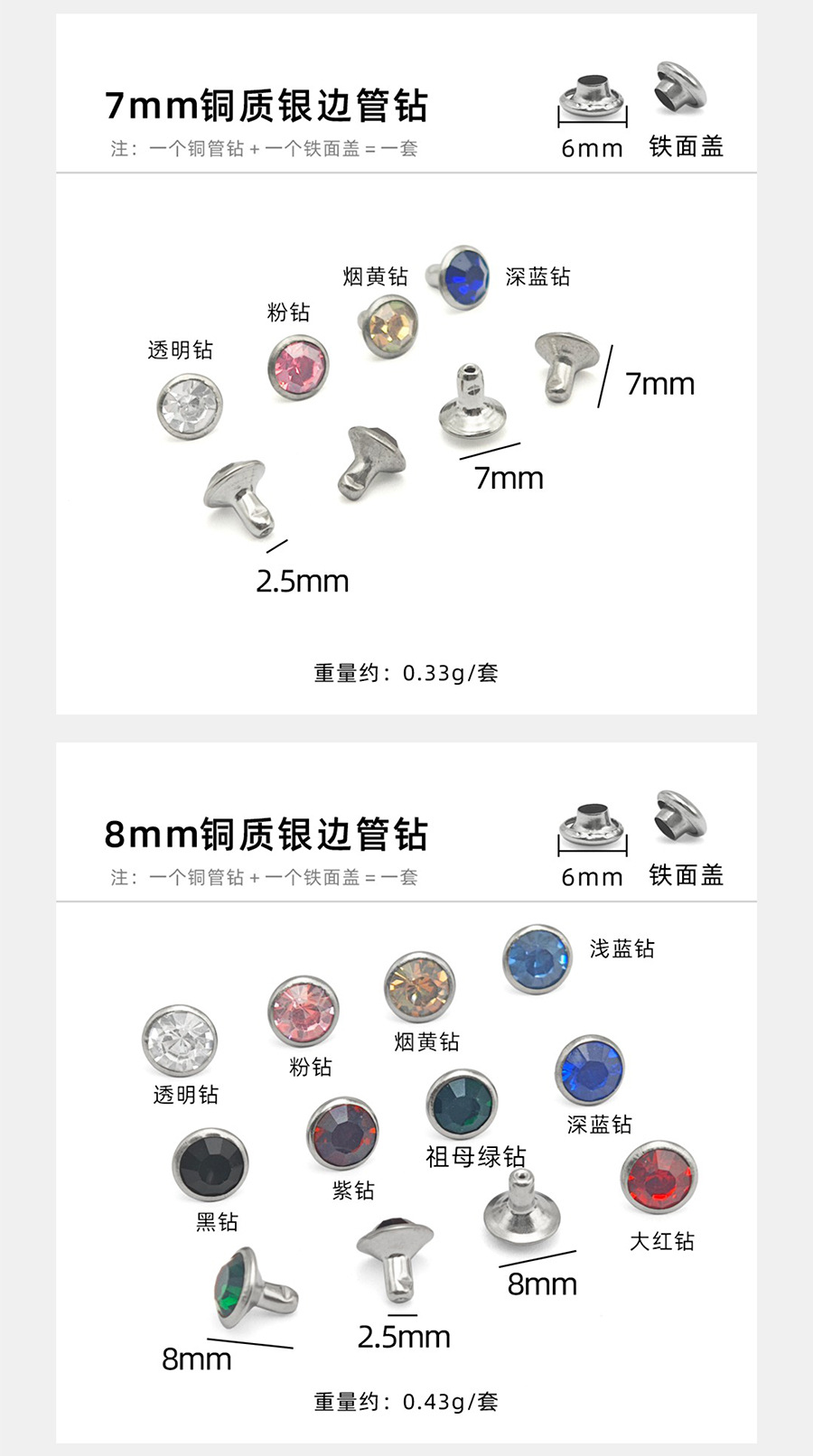 5-12 мм серебряная трубчатая заклепка для стекла, медная заклепка для украшений, декор для кожаных ремней, многоцветная заклепка