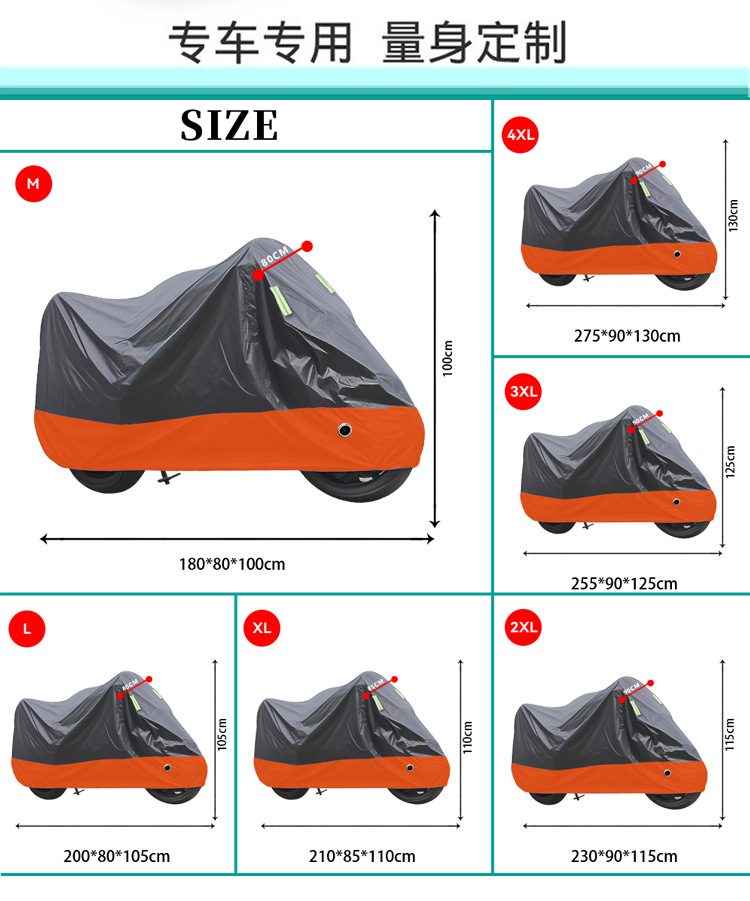 M:180*80*100cm; L:200*80*105cm; XL:210*85*110cm; 2XL:230*90*115cm; 3XL:255*90*125cm; 4XL:275*90*130cm