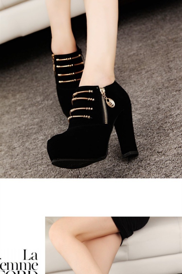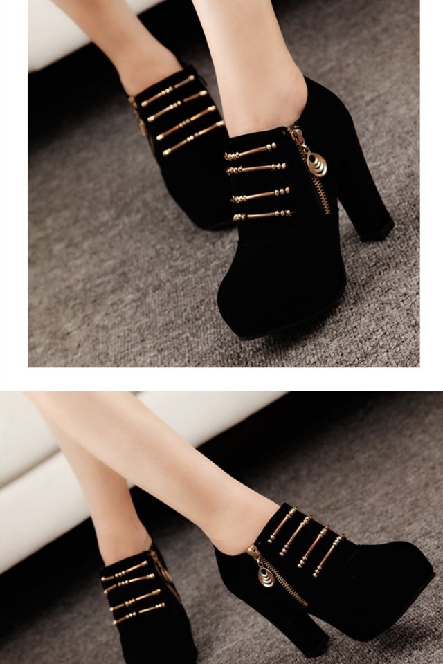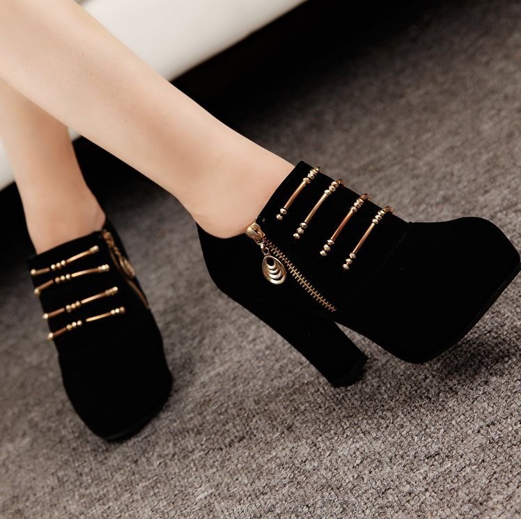 Новые осенние черные профессиональные женские туфли на толстом каблуке и толстой подошве, водонепроницаемая платформа, женские туфли на очень высоком каблуке с боковой молнией, замшевые женские туфли с бисером