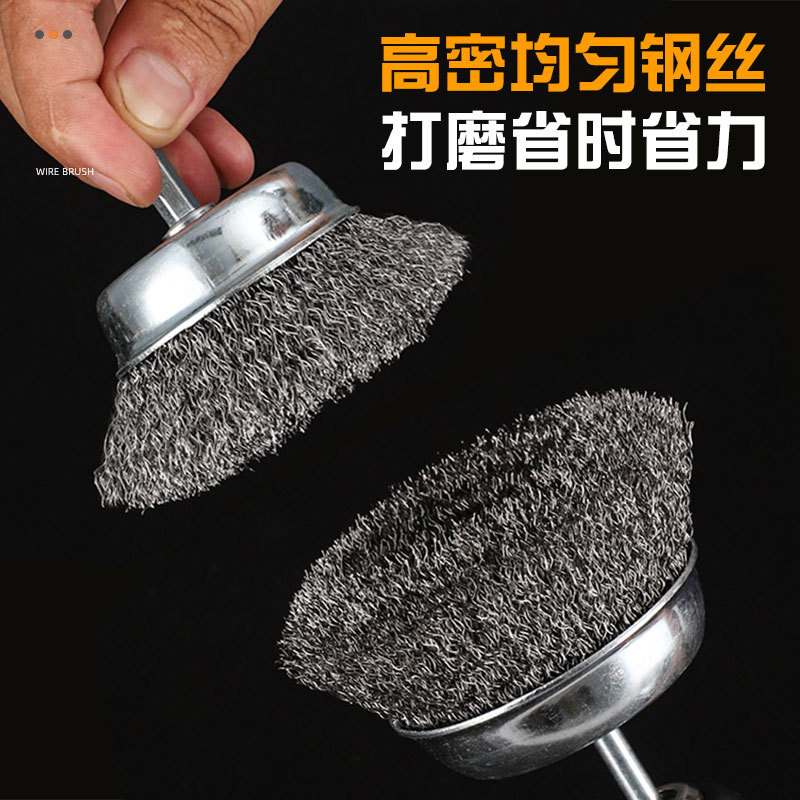 Трансграничное проволочное колесо с шлифовкой стержня и удалением ржавчины, электрическая шлифовальная дрель, набор шлифовальных инструментов для удаления ржавчины, чашеобразная проволочная щетка, ручка-кисть