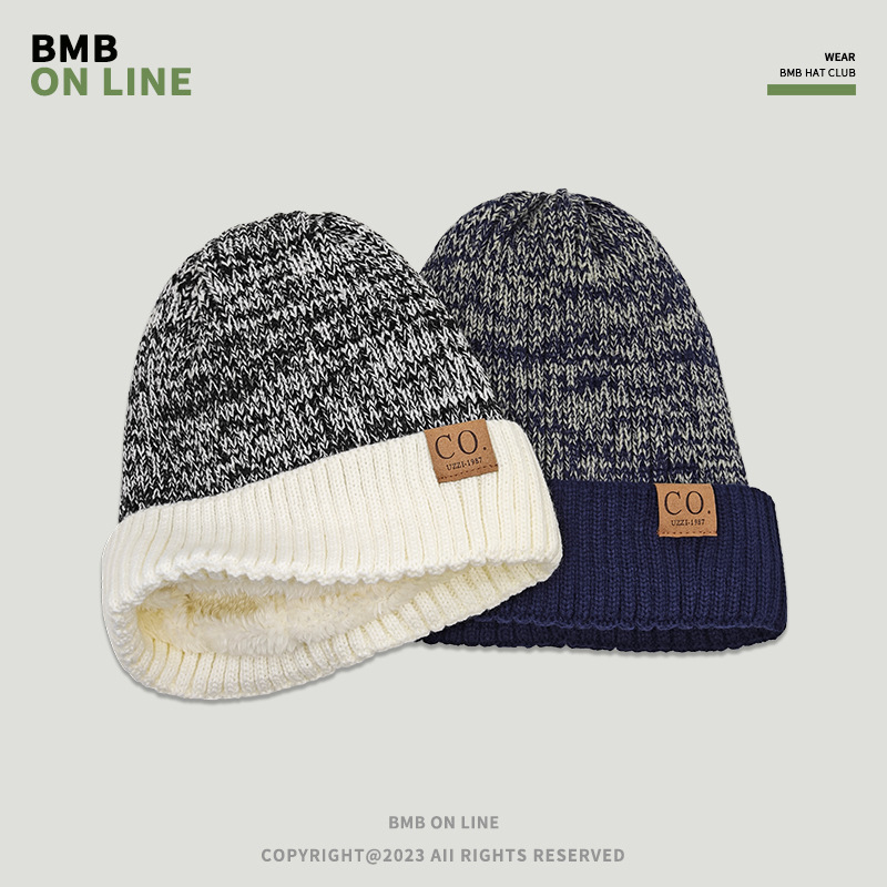 Двухцветный логотип с буквой CO и бархатная вязаная шапка.