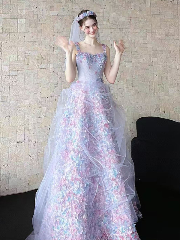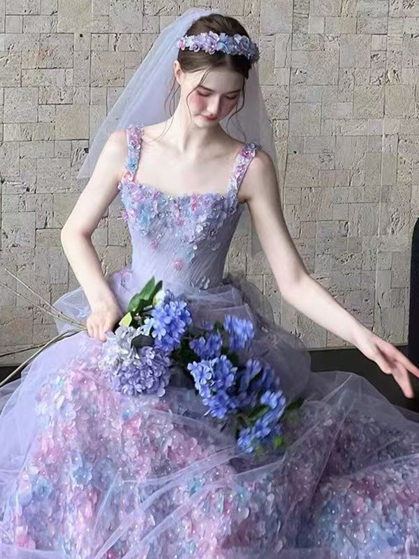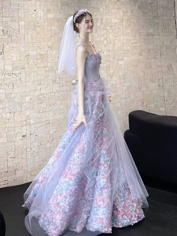 Фиолетовое вечернее платье 2025 года, новое высококлассное доступное роскошное платье для ведущих, нишевое банкетное платье, одежда для высококлассных художественных экзаменов и выступлений.