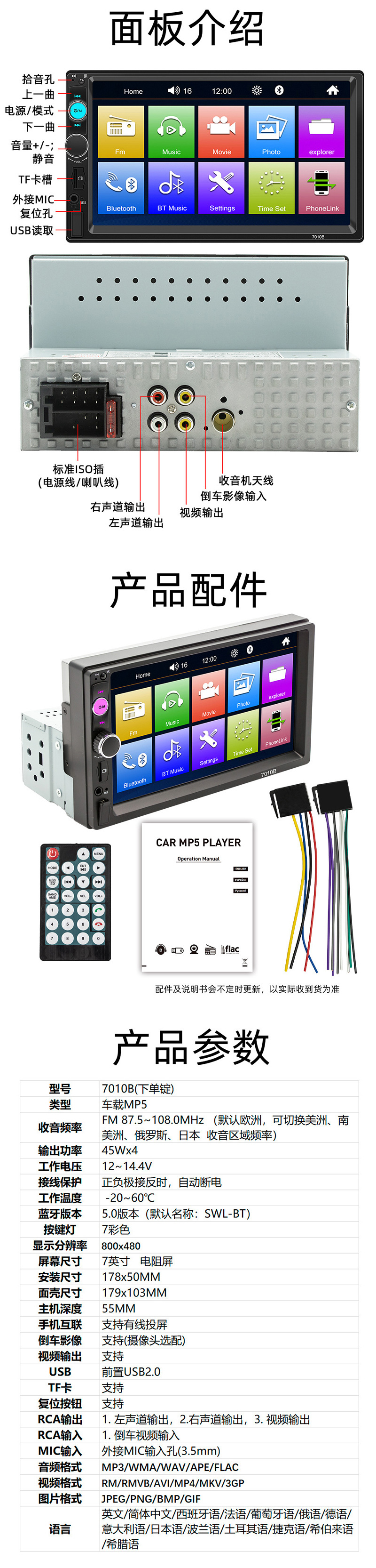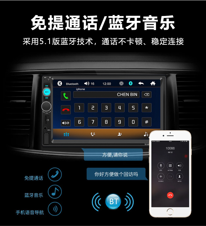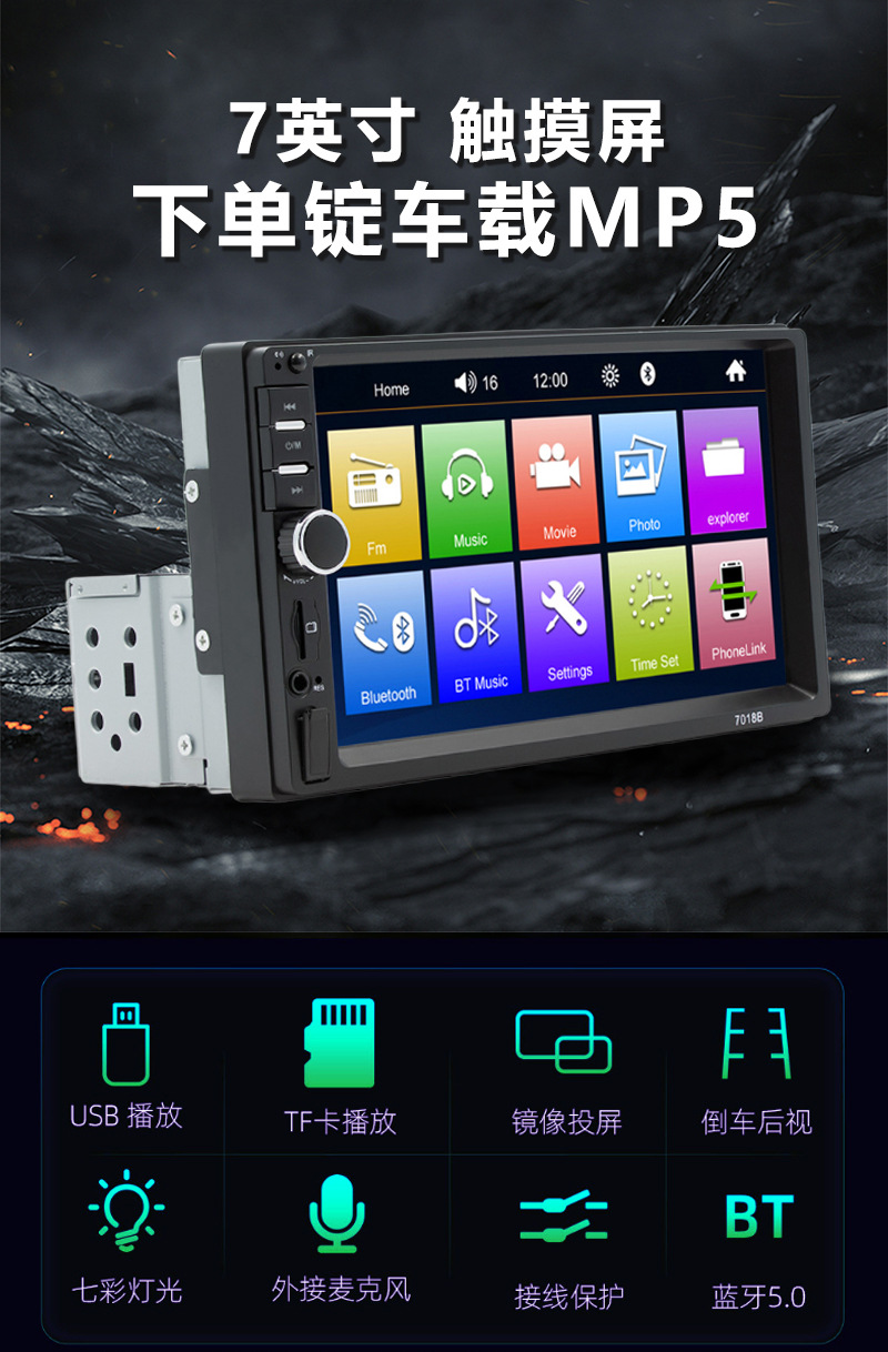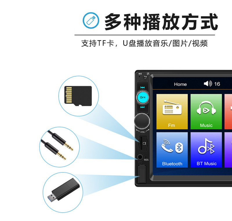 7inch Автомобильный одноцилиндровый MP3/MP5 мультимедийный плеер USB-слот для карт Автомобильное Bluetooth-радио Камера заднего вида