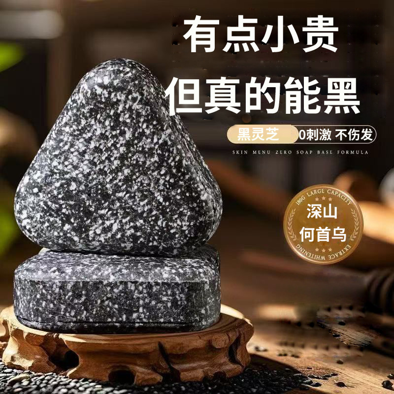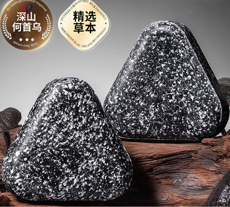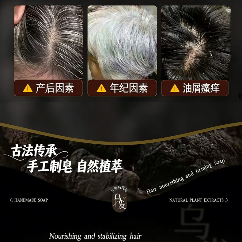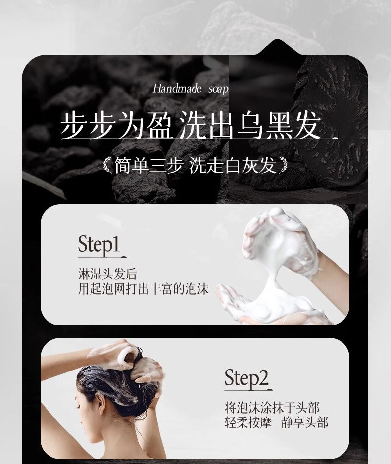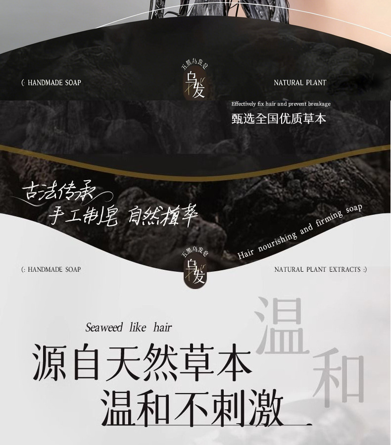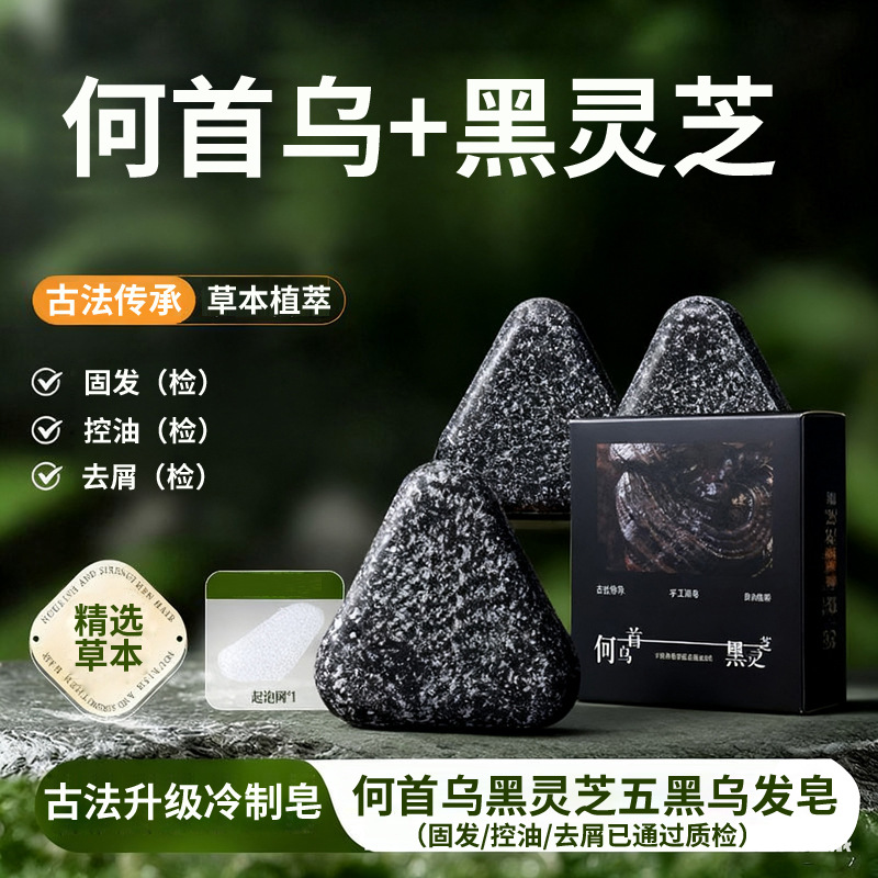 Мыло ручной работы с экстрактами растений: горца многоветвистого, черной ганодермы, листьев платикладуса восточного, для ухода за черными волосами, контроля жирности и против перхоти.