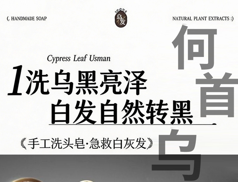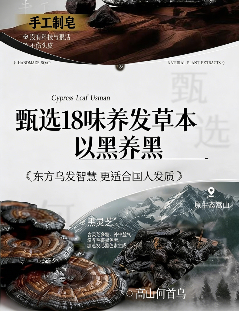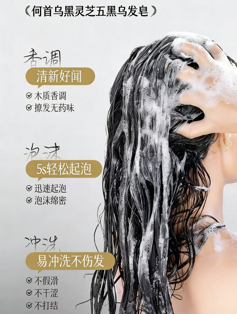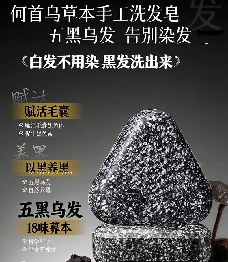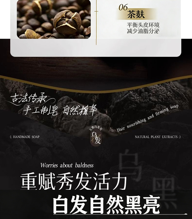 Мыло ручной работы с экстрактами растений: горца многоветвистого, черной ганодермы, листьев платикладуса восточного, для ухода за черными волосами, контроля жирности и против перхоти.