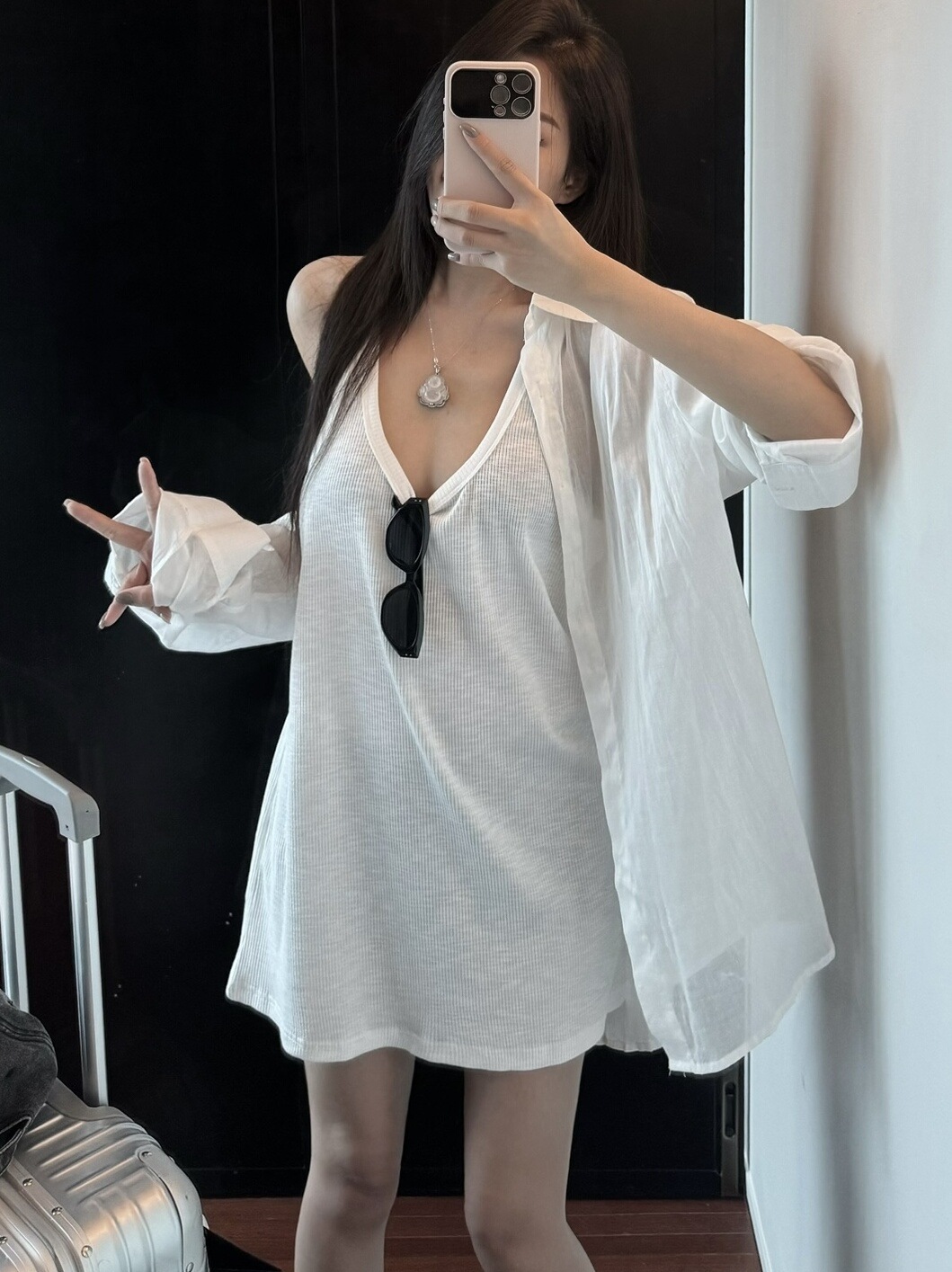 2025 новый летний стиль, легкая и универсальная рубашка с защитой от солнца + свободная юбка-жилет в стиле чистой страсти, комплект из двух предметов для женщин