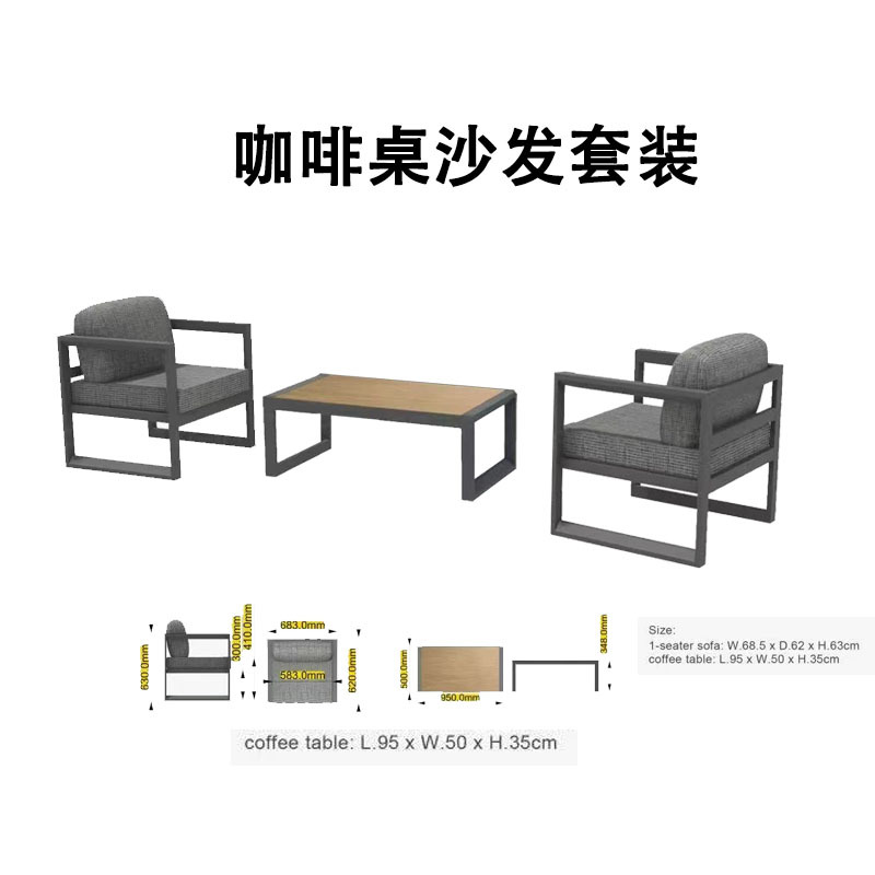 Журнальный столик (95*50*35); Диван (68*62*63); Комплект журнального столика*1+одноместный диван*2