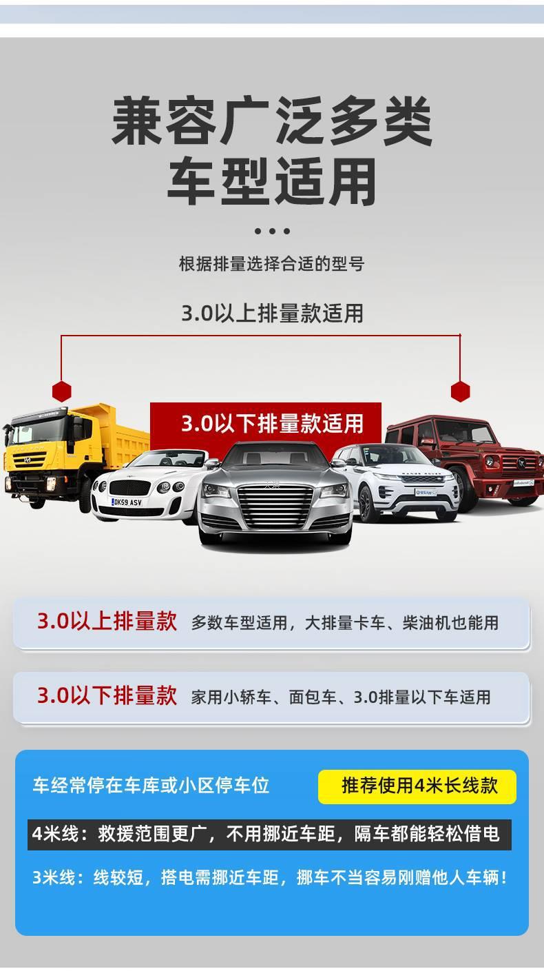 【 2m медных жилы 】 для микродисплейса; 2.5m Медный сердечник [смещение ниже 1,8] микро-маленький автомобиль 8 квадратных метров; 3.18m Медный сердечник [смещение ниже 3,0] 10 квадратных метров; 4.18m Медный сердечник [смещение ниже 3,0] 10 квадратных метров; 3m Bold 2200A с медным сердечником [объем ниже 4,0] Горячий выбор внедорожника 12 квадратных метров; 4.12m квадратных метров утолщенный медный сердечник 2200А [смещение ниже 4,0] Горячий выбор внедорожника 12 квадратных метров; 3m Очень толстый медный сердечник 2500А [применим ко всем сериям автомобилей] Грузовик SUV Горячий выбор 25 квадратных метров; Модернизированный и утолщенный [сердечник из чистой меди 3m], подходящий для рабочего объема менее 3,0 и 8 квадратных метров.; Модернизированный и утолщенный [сердечник из чистой меди 4m], подходящий для рабочего объема менее 3,0 и 8 квадратных метров.; Модернизированный и смелый [10 ядер из чистой меди] горячий выбор внедорожника площадью 3m квадратных метров; Модернизированный и смелый [сердечник из чистой меди 3m шт.] подходит для внедорожника площадью 12 квадратных метров.; Модернизированный и смелый [сердечник из чистой меди 4m шт.] подходит для внедорожника площадью 12 квадратных метров.; обновление ☆ Универсальный для всех серий автомобилей [ 3m медных жил] 16 квадратных метров для авторемонтных мастерских; обновление ☆ Универсальный для всех серий автомобилей [ 4m медных жил] 16 квадратных метров для авторемонтных мастерских; 4m [Жирная улучшенная версия] Медный сердечник 1800A [смещение ниже 3,0] семейный автомобиль