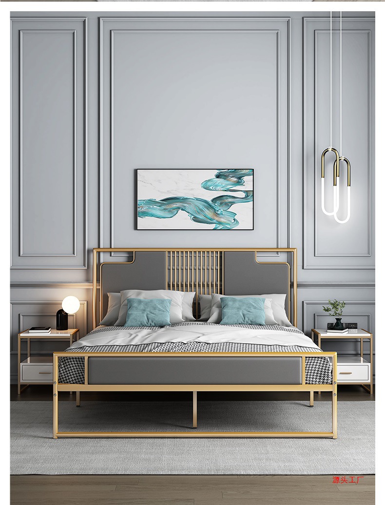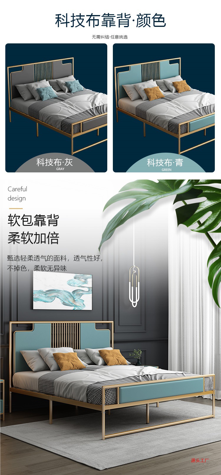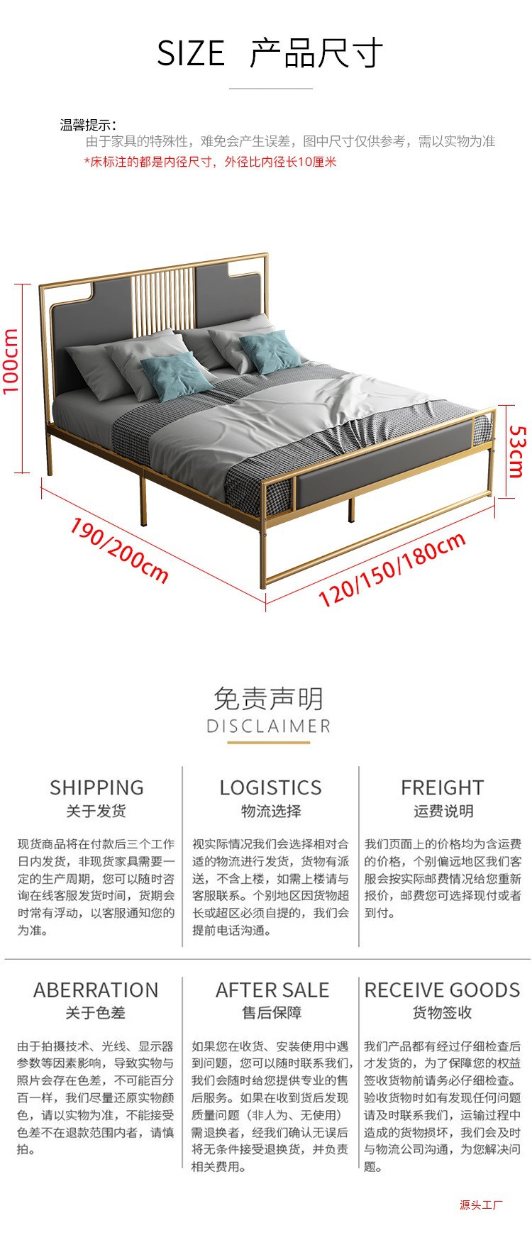 Современная простая легкая роскошная золотая железная кровать, новая двуспальная железная кровать в китайском стиле, 1.35m односпальная металлическая кровать
