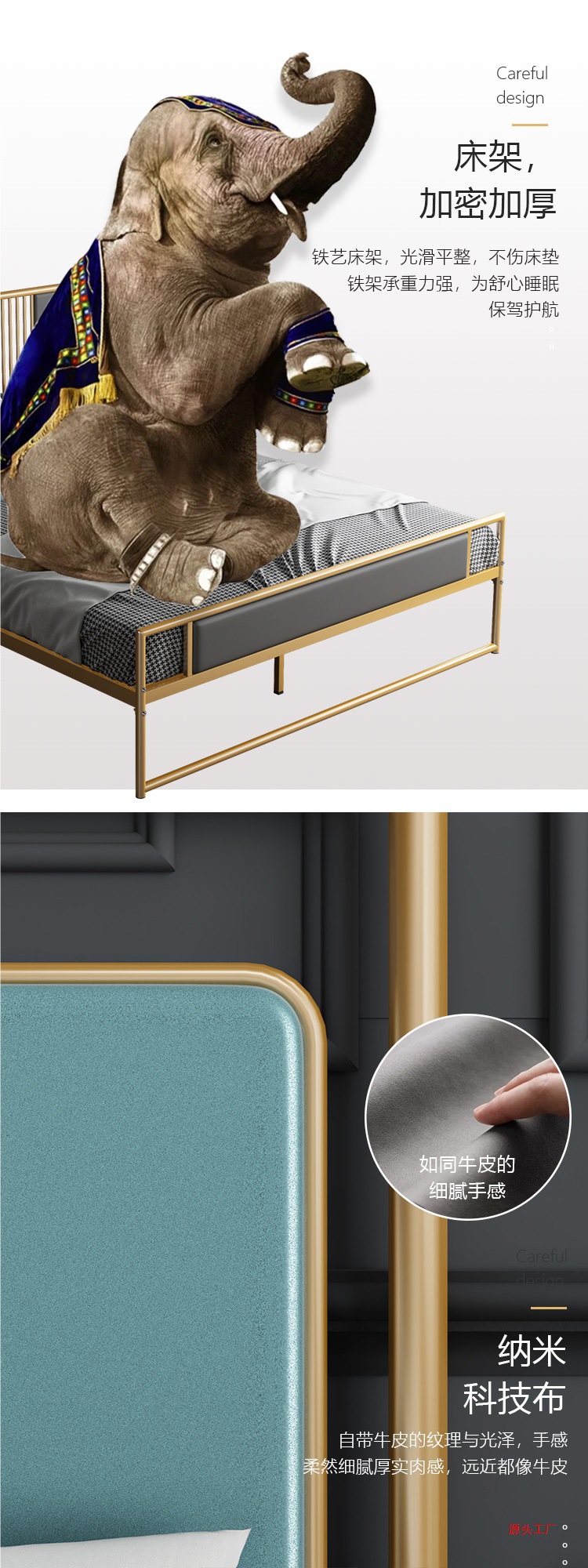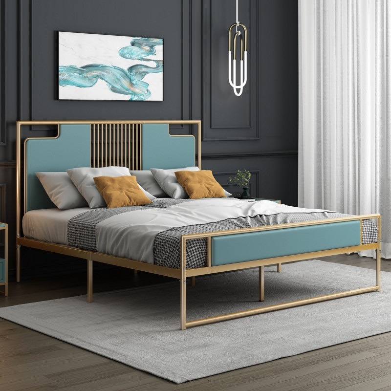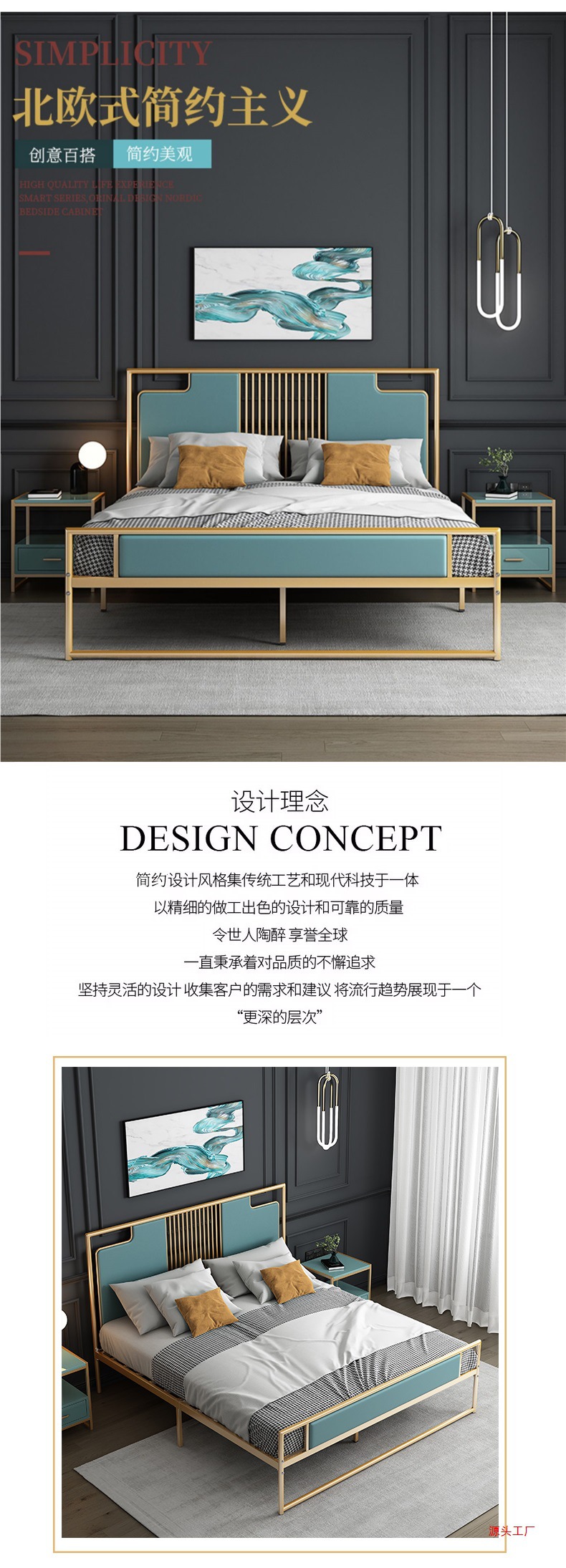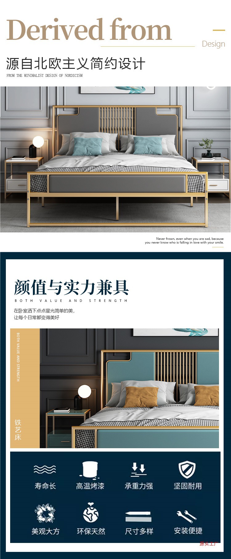 Современная простая легкая роскошная золотая железная кровать, новая двуспальная железная кровать в китайском стиле, 1.35m односпальная металлическая кровать