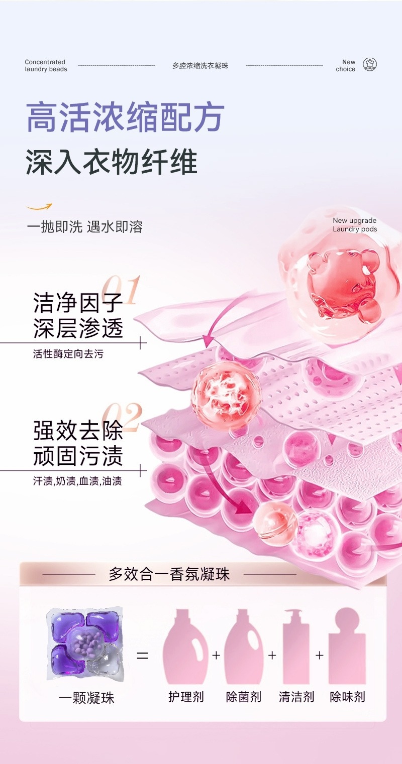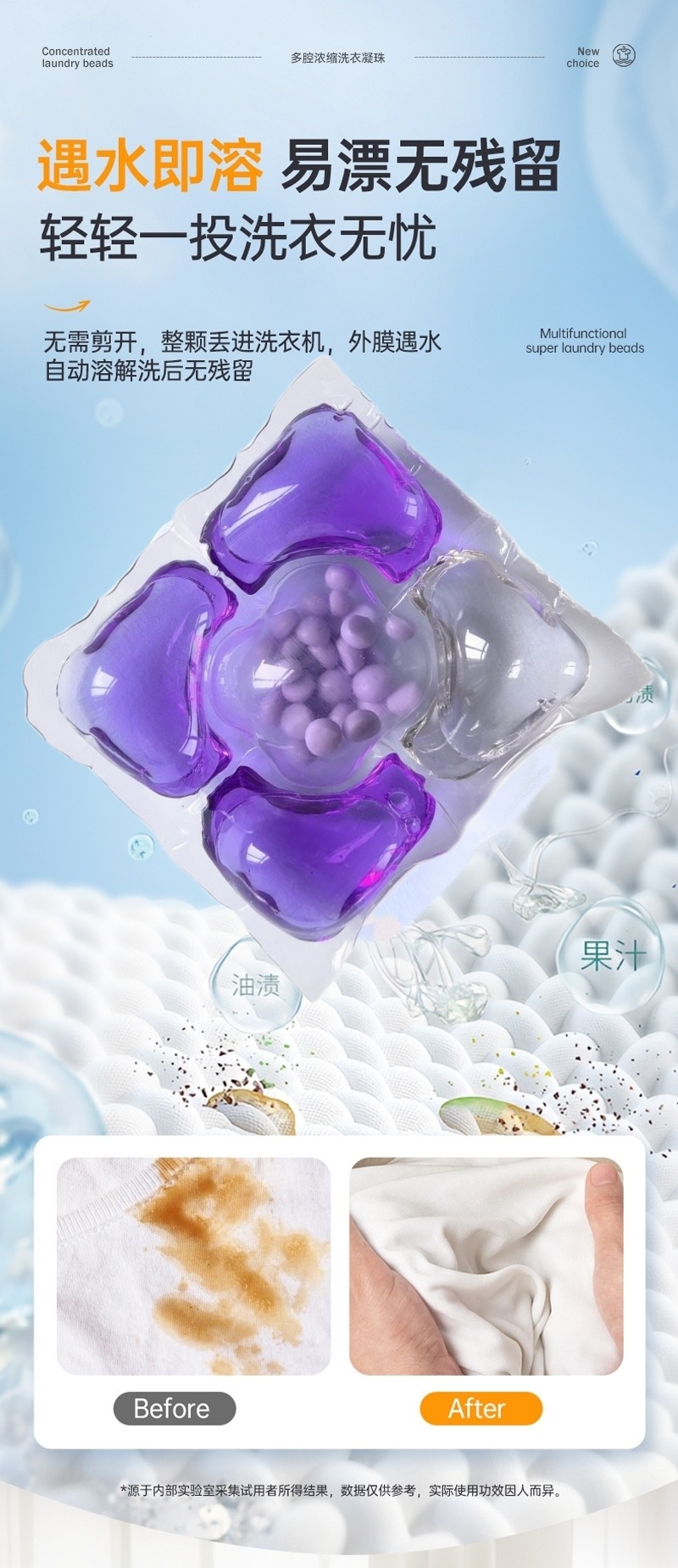 Капсулы для стирки с лавандой, концентрированные шарики для стирки «пять в одном», ароматизированные гранулы для удаления пятен, капсулы с длительным ароматом.