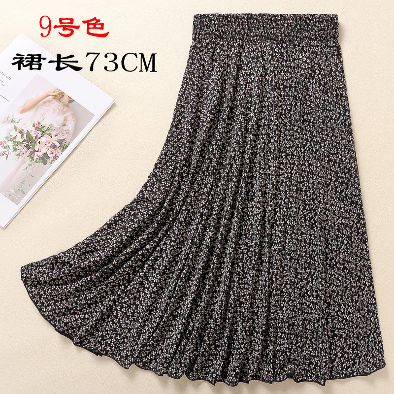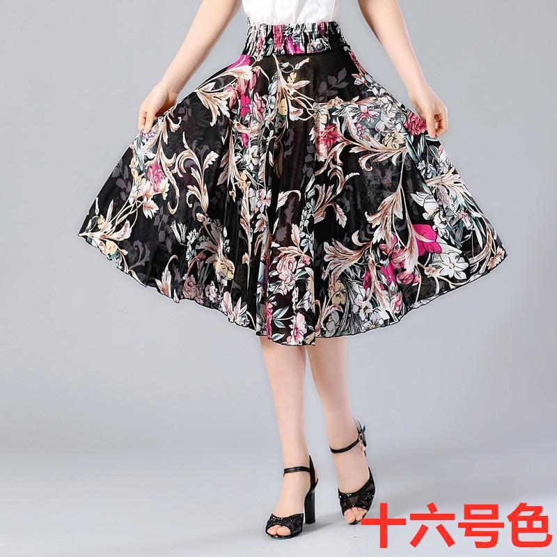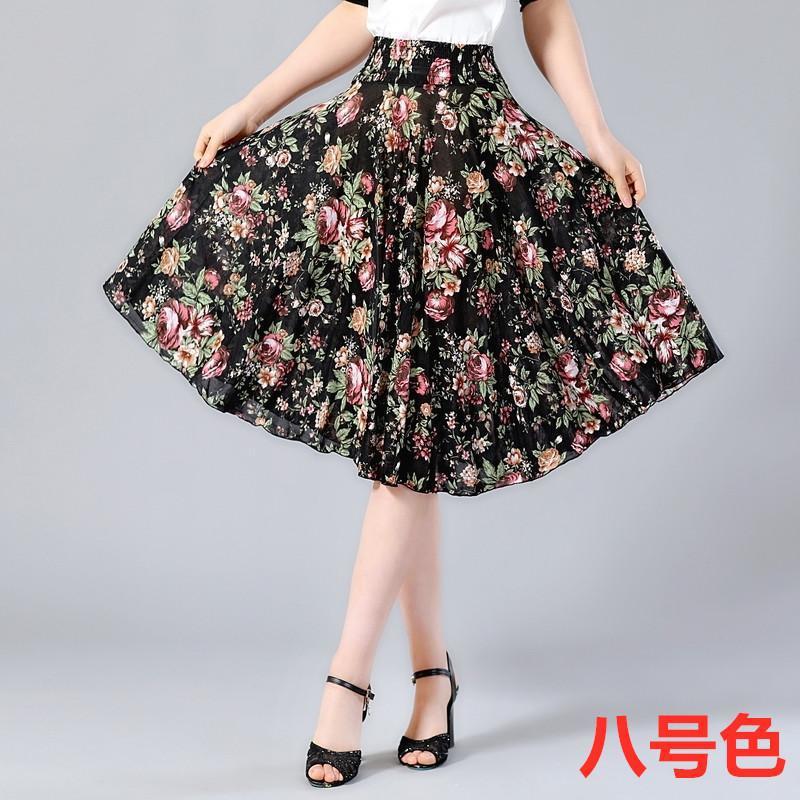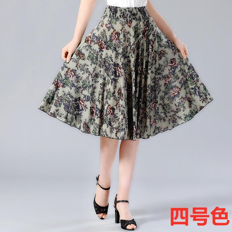 Летняя юбка средней длины для среднего и пожилого возраста, короткая юбка с цветочным принтом, женская юбка средней длины для мам, ледяная шелковая юбка для квадратного танца, солнечная юбка