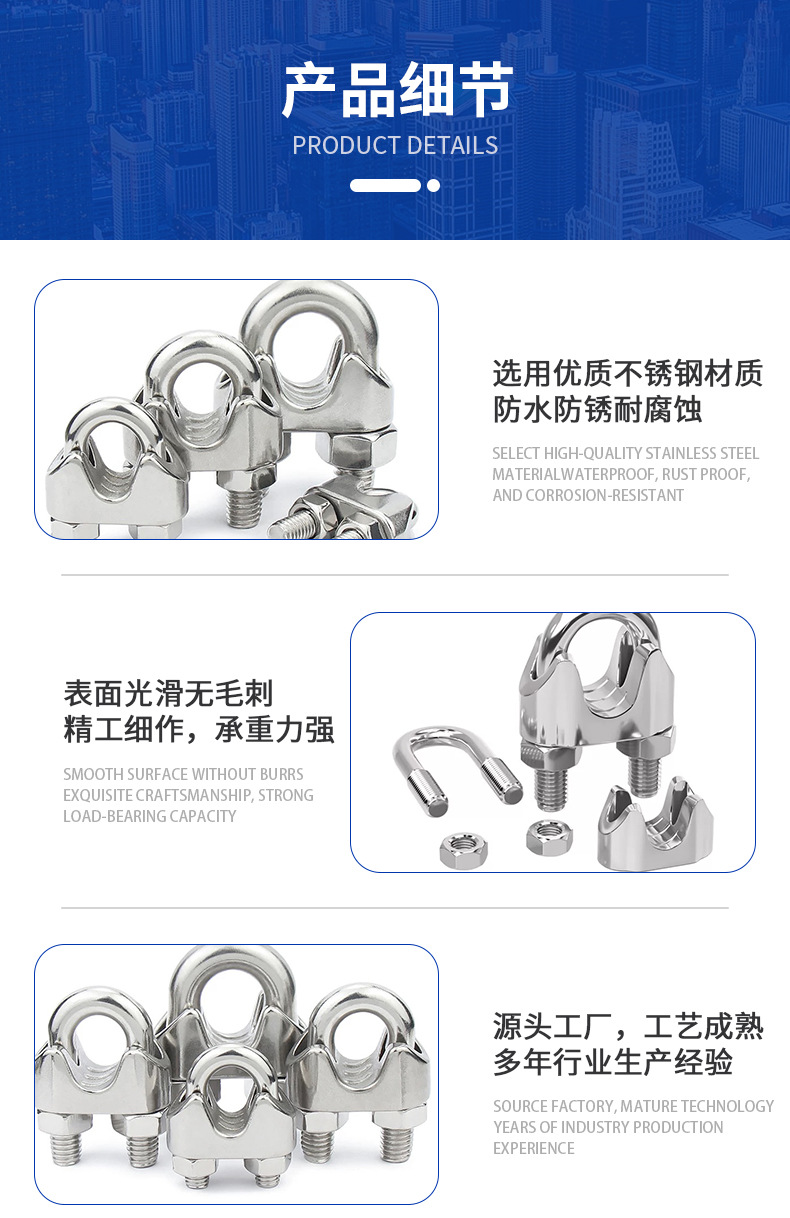 Производители поставляют оптом зажим для троса из нержавеющей стали 304, U-образная зажимная головка, натяжитель троса, U-образная зажимная головка