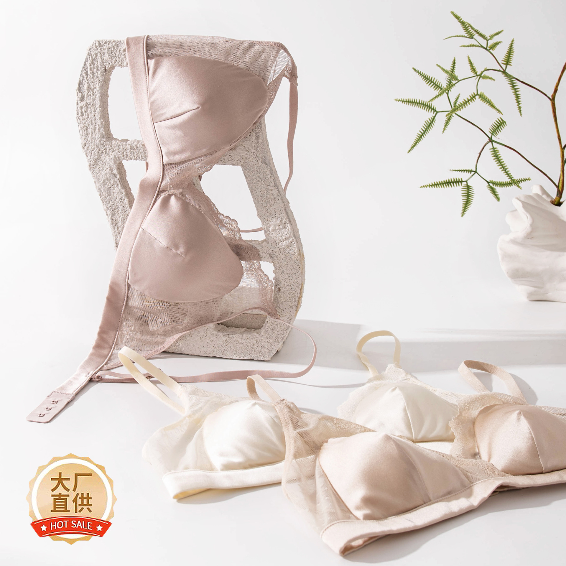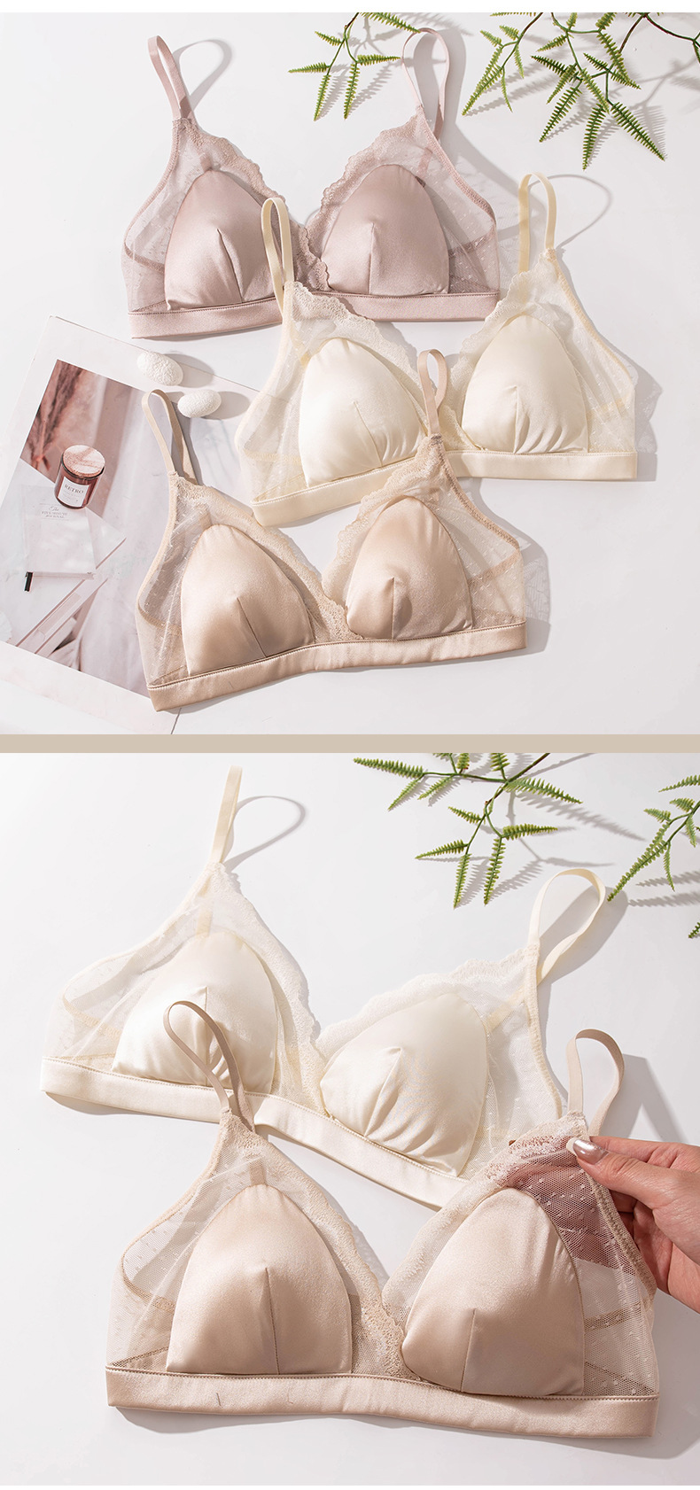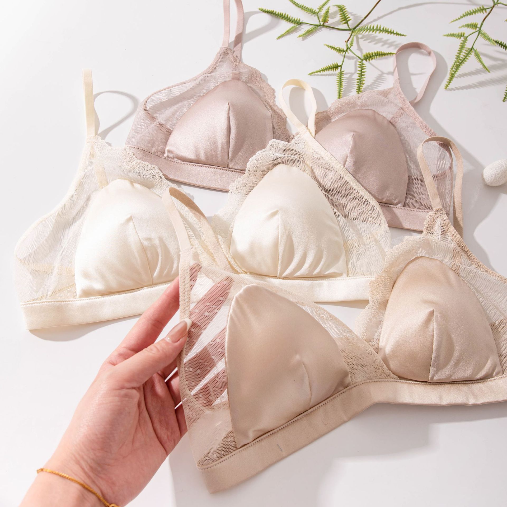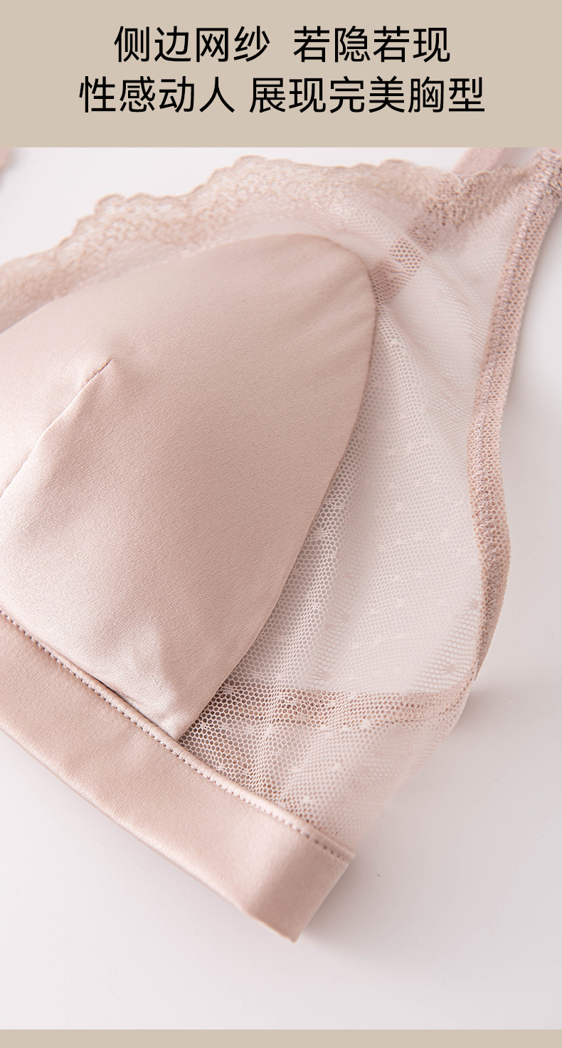 Шелковый глянцевый кружевной бюстгальтер, ультратонкий атласный бюстгальтер без косточек с маленькой грудью, треугольная чашка из шелкового шелка, французский бюстгальтер для нижнего белья