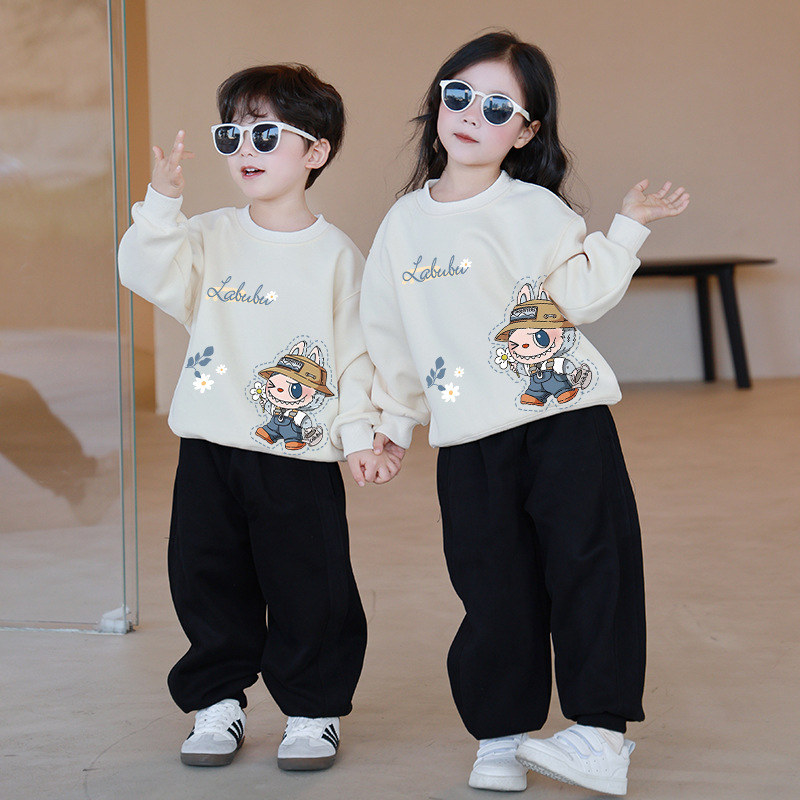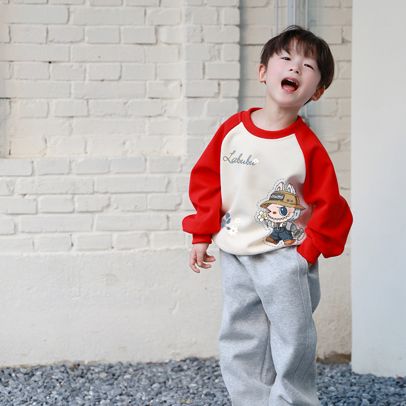 Популярная милая толстовка Labubu, новая осенняя коллекция, для детей, с цветными рукавами реглан, круглым вырезом, в корейском стиле.