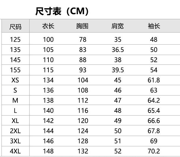 125; 135; 145; 155; XS.; С.; М; л; XL.; 2XL; 3XL.; 4XL