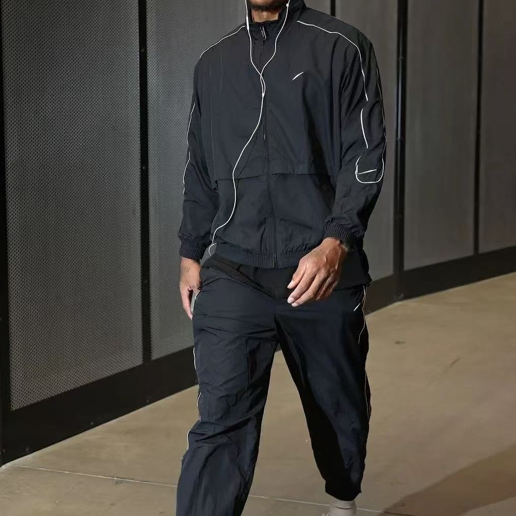 Весенне-осенний костюм NK, спортивная повседневная ветровка, брюки с длинными рукавами, вышитый логотип, европейская и американская трансграничная оптовая торговля