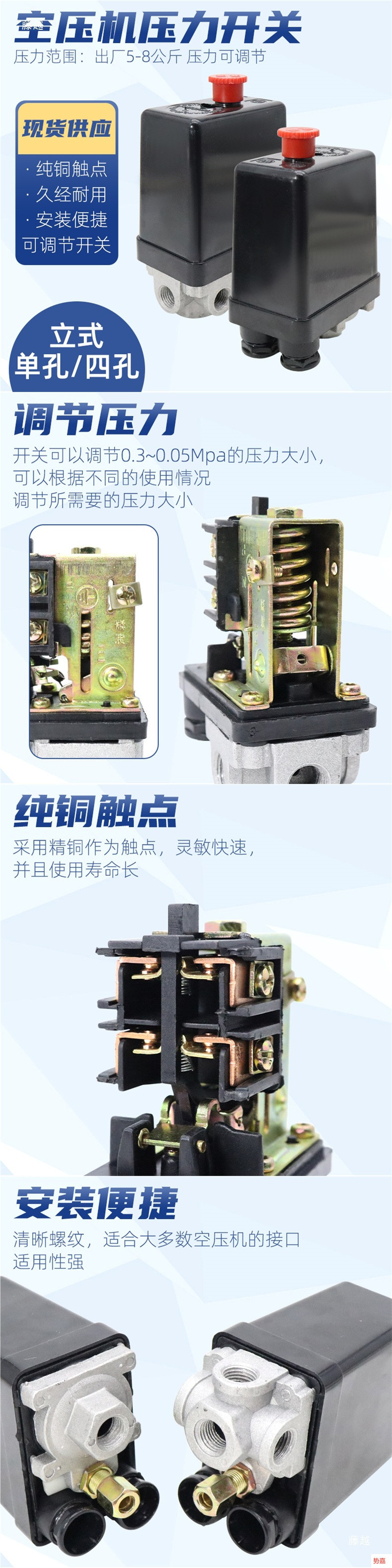 Вертикальный переключатель давления воздуха с одним отверстием; Вертикальный переключатель давления воздуха с четырьмя отверстиями
