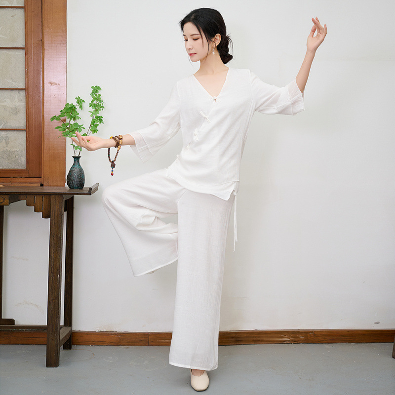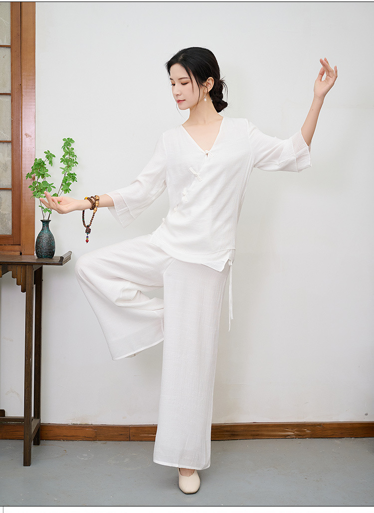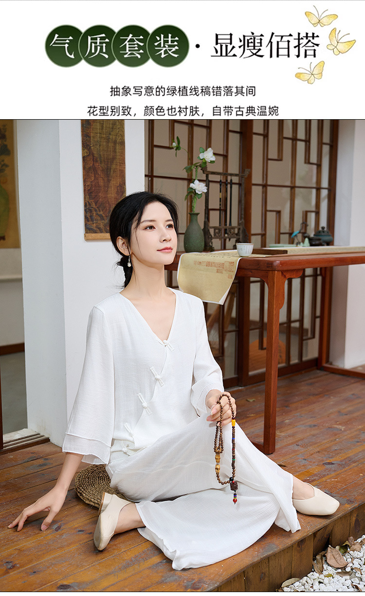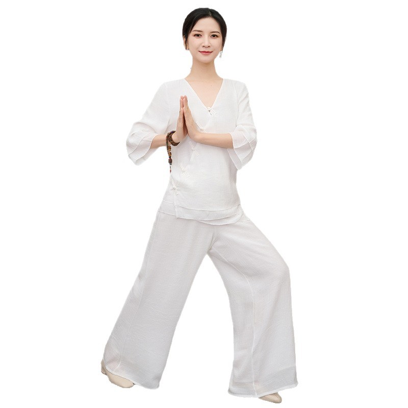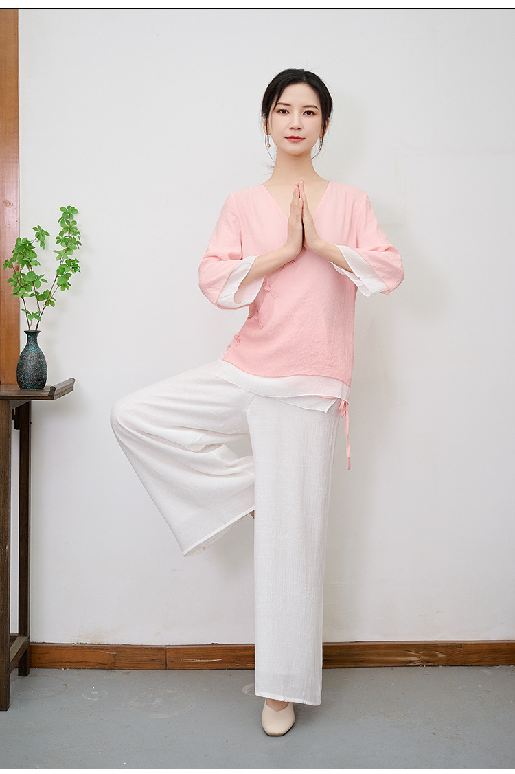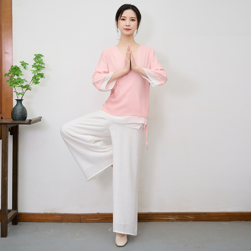 Реальный снимок # 2025 новый этнический стиль хлопок и лен одежда для медитации дзен комплект из двух предметов китайский стиль одежда для йоги