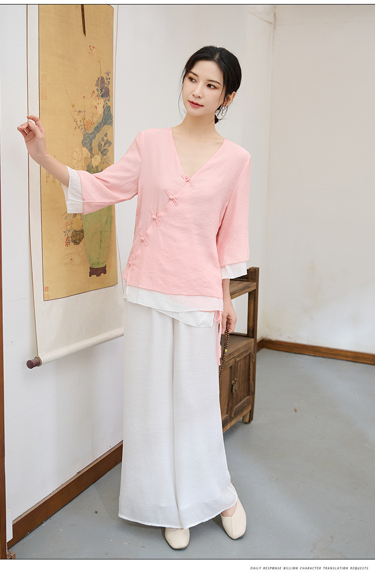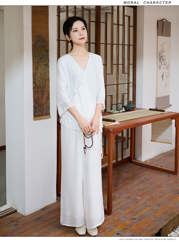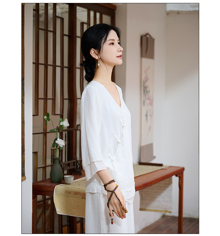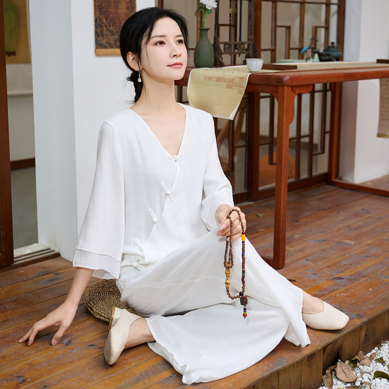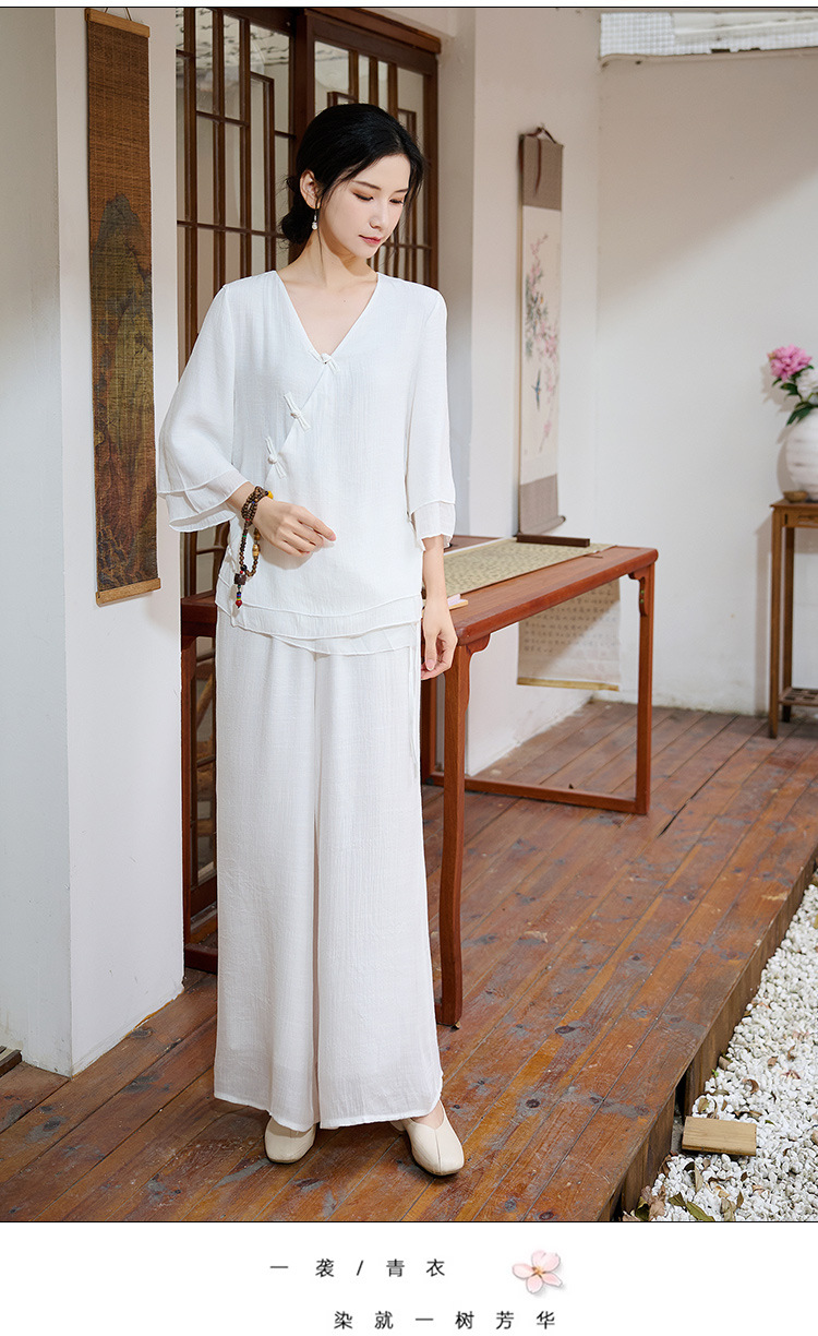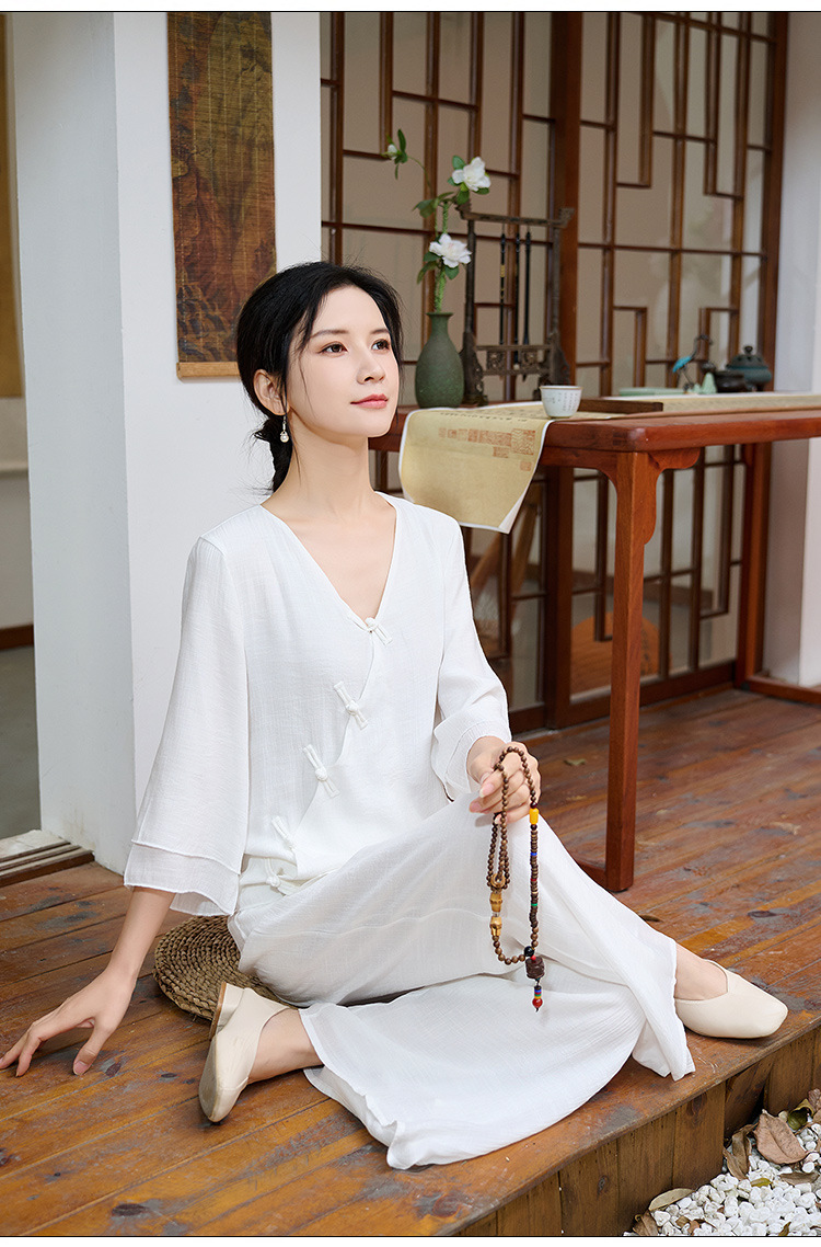 Реальный снимок # 2025 новый этнический стиль хлопок и лен одежда для медитации дзен комплект из двух предметов китайский стиль одежда для йоги