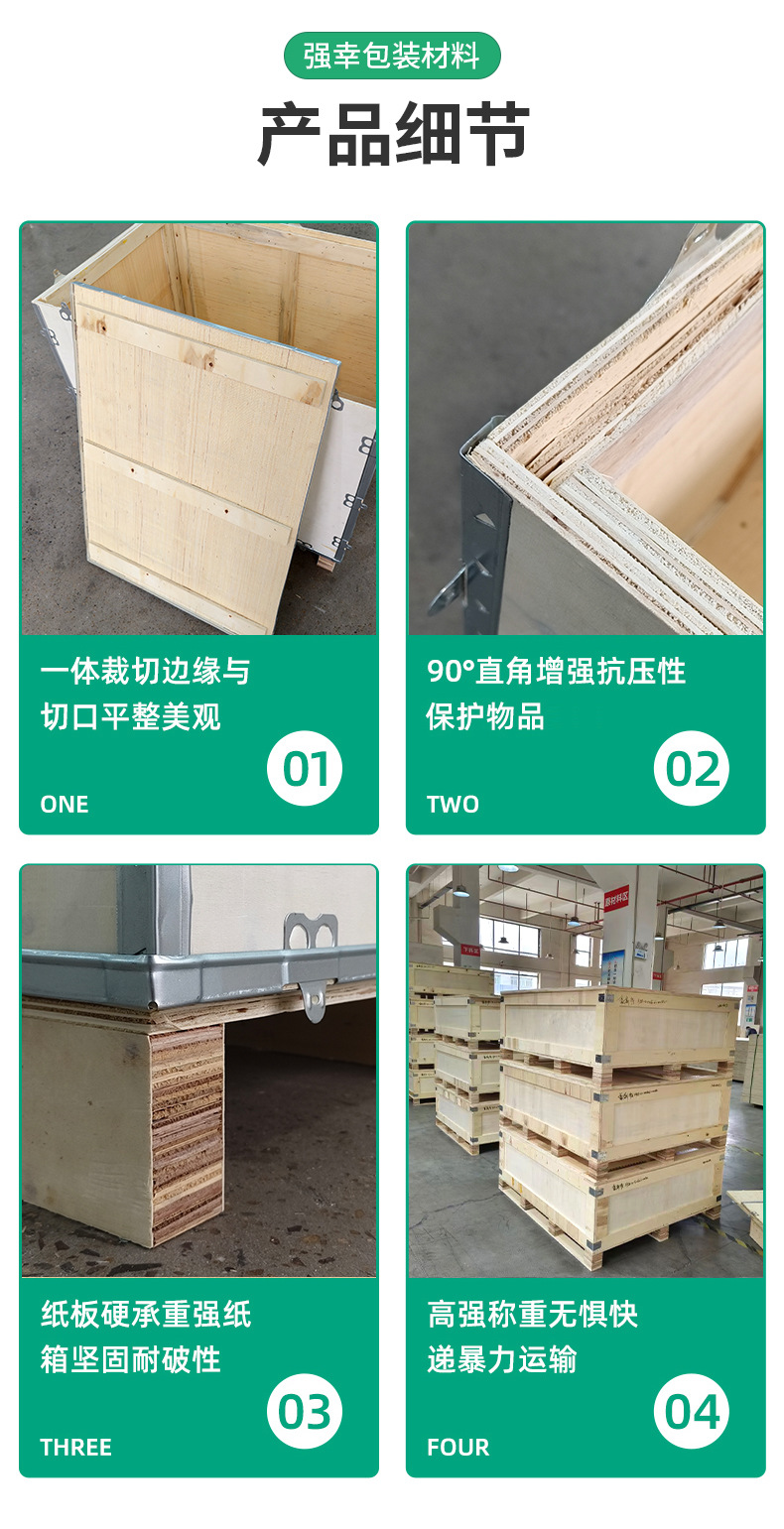 Индивидуальные многопараметрические логистические оборотные деревянные ящики с металлическим ремнем, упаковка без фумигации, оборудование для транспортировки, съемные деревянные ящики.