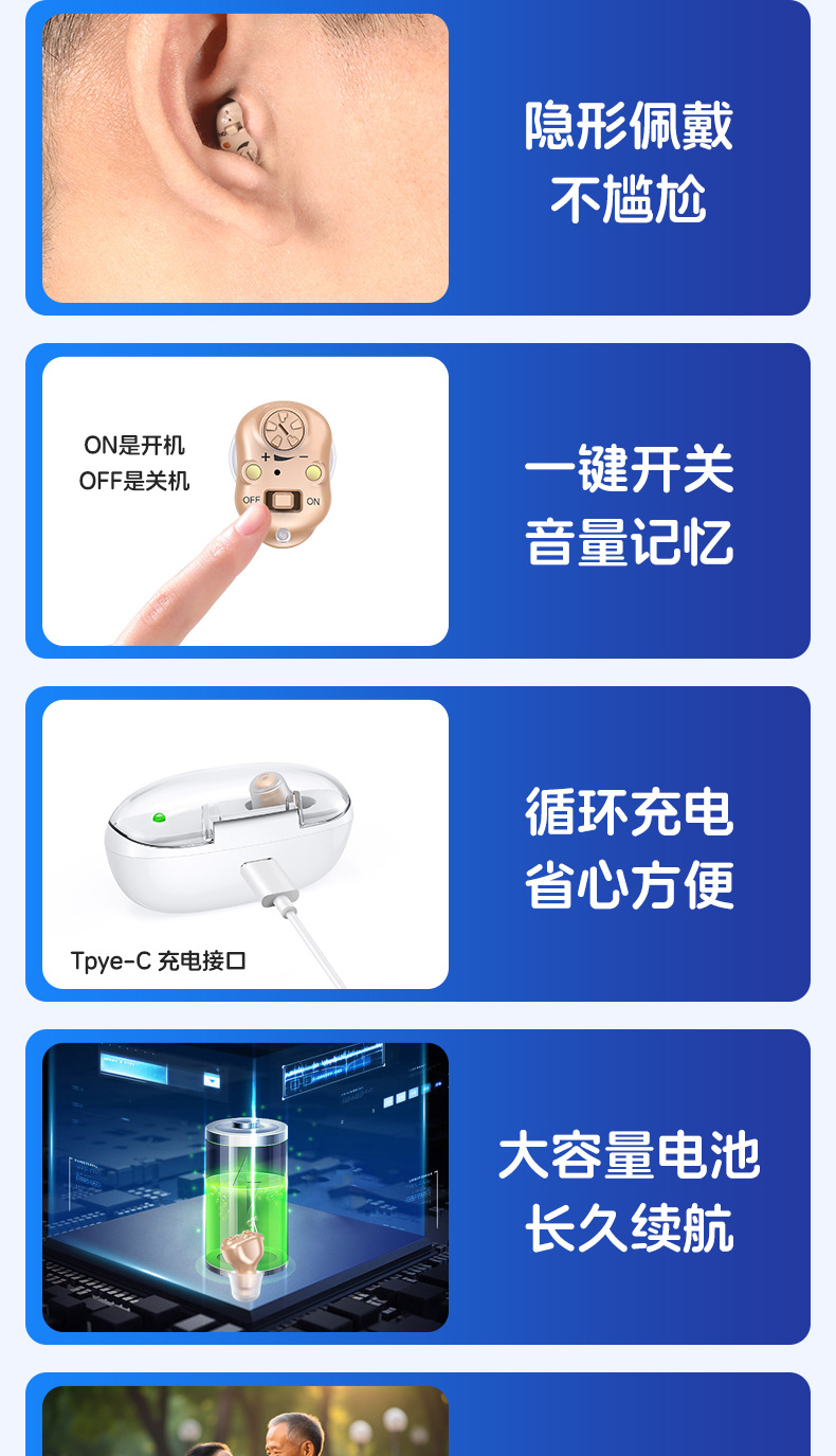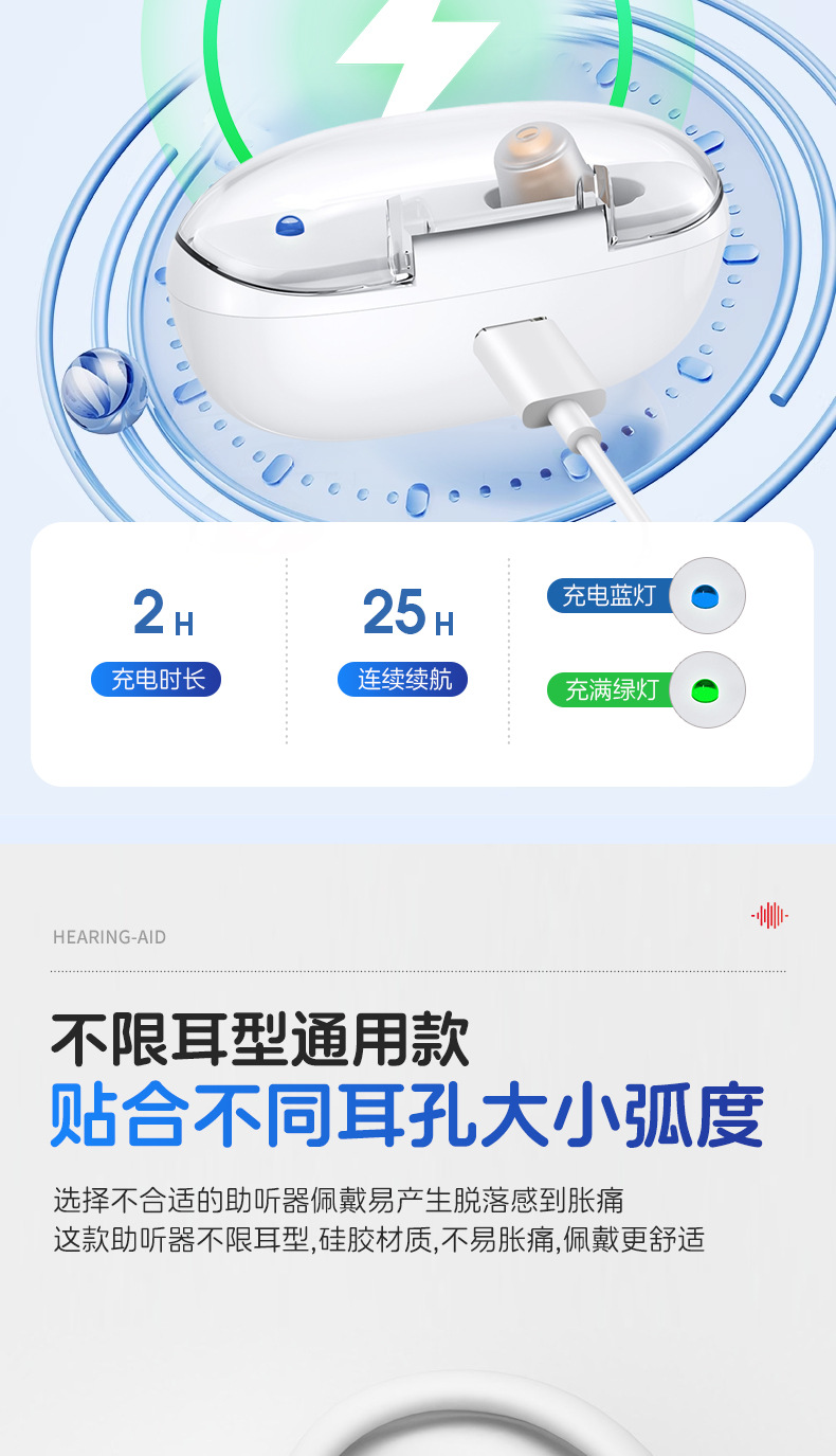 Слуховой аппарат для людей среднего и пожилого возраста, перезаряжаемый невидимый слуховой аппарат-вкладыш для средней и тяжелой глухоты, усилитель звука для потери слуха за ухом.