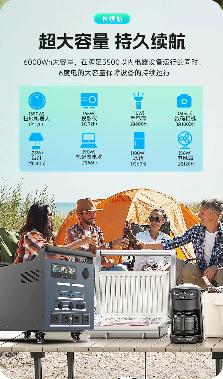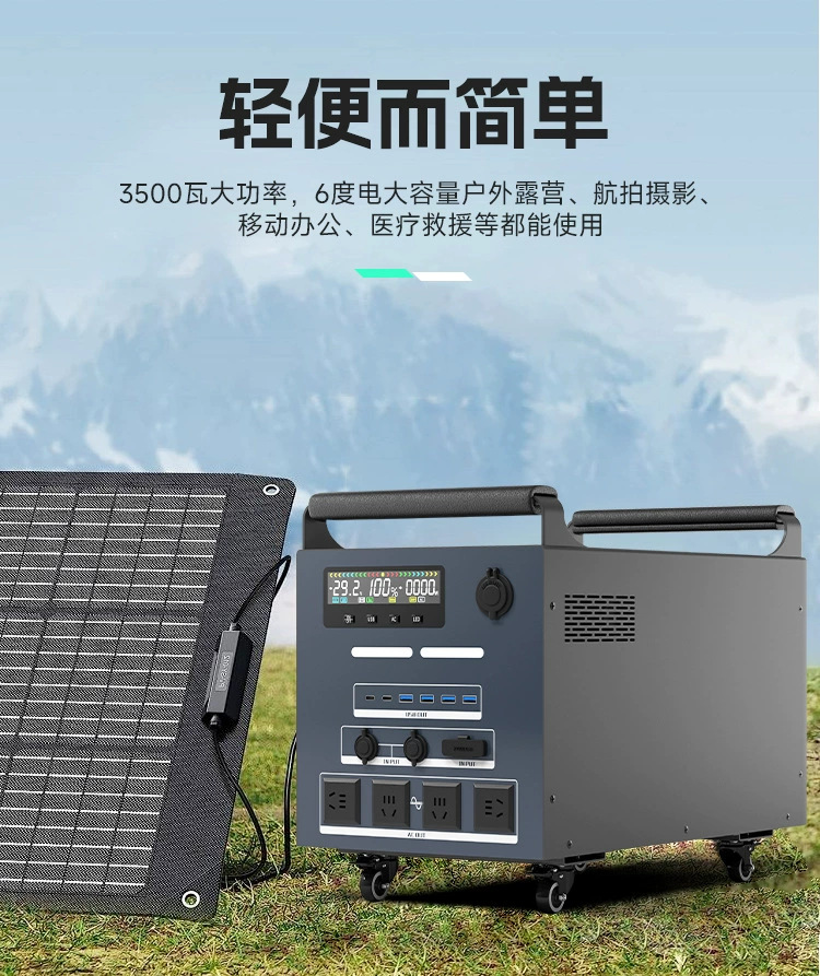 Мобильный источник питания для улицы мощностью 3500 Вт, система накопления энергии на солнечных батареях большой емкости, аккумулятор для кемпинга