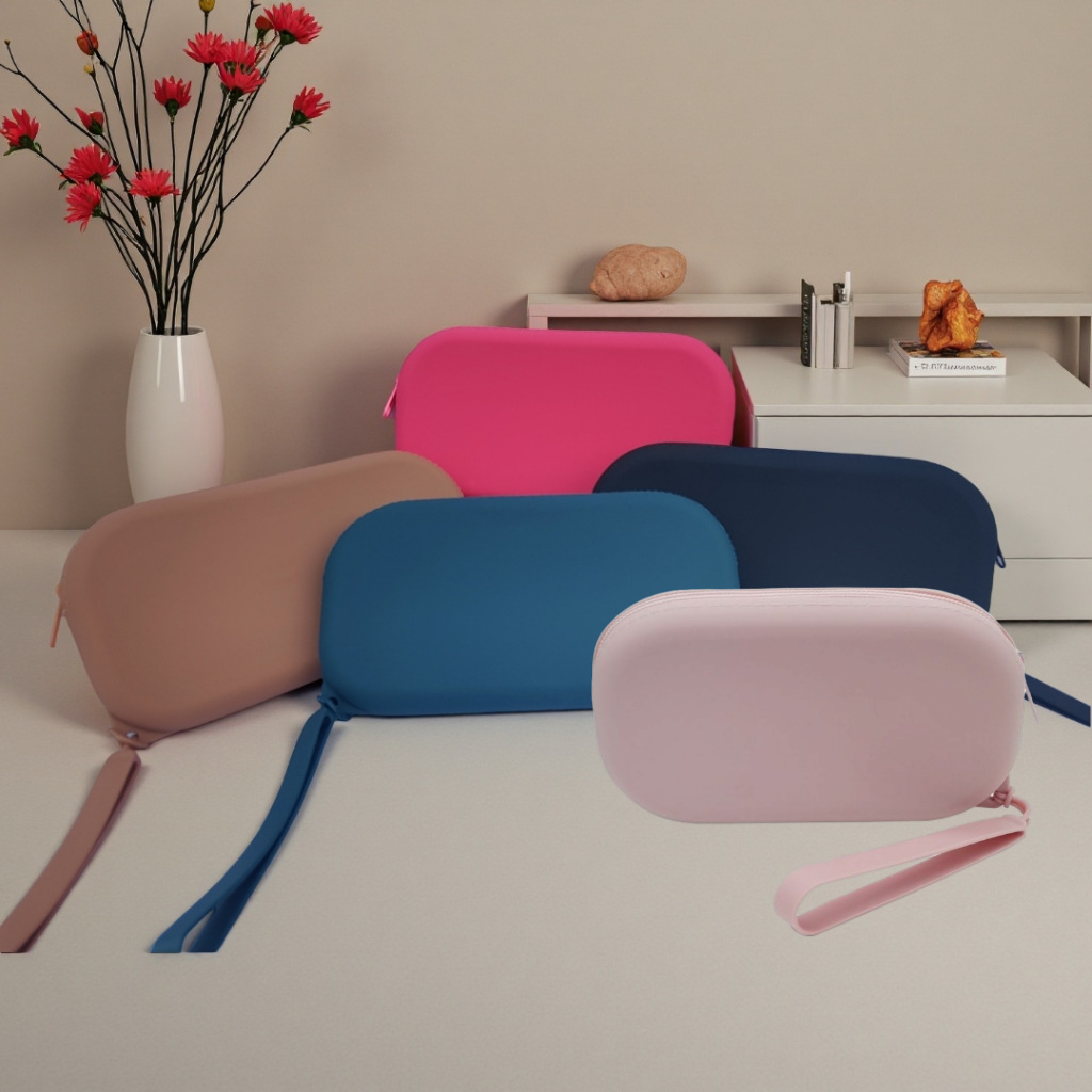 Овальный силиконовый портативный кошелек для монет, простой однотонный органайзер для мелочей, сумка для хранения мобильного телефона на молнии, в городском минималистичном стиле.