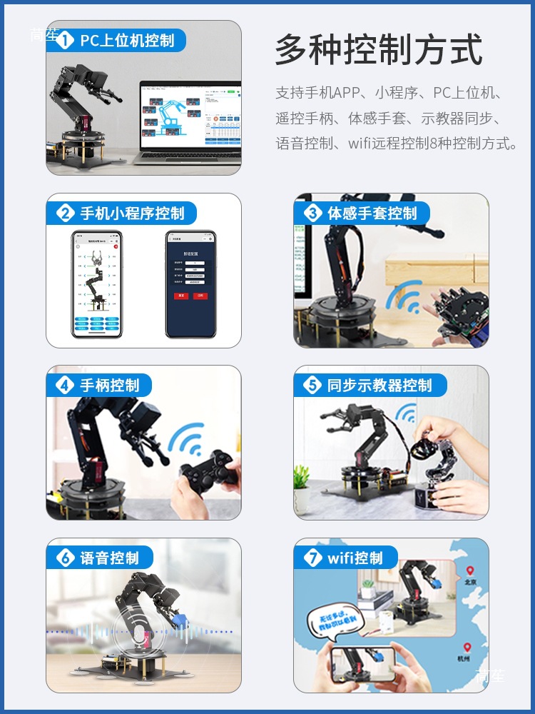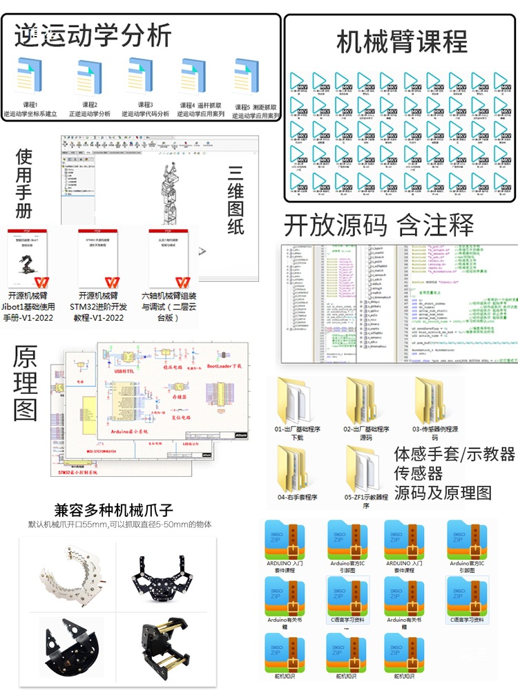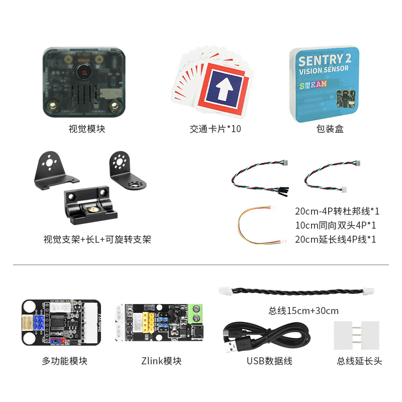 Роботизированная рука-кронштейн J1 + сервопривод шины; Кронштейн роботизированной руки-кронштейн J1; Механический рычаг воздушного насоса — кронштейн J1 + сервопривод шины; Одноосный сервопривод шины ZP15S; Двухосный рулевой механизм ZP15D; Двухосный сервопривод шины ZP25D; Двухосный рулевой механизм ZP10D; Одиночный воздушный насос 6-12 В; Модуль вида-К210; Модуль видения-H7PLUS; Металлический модуль камеры; Шестиосевая роботизированная рука STM32; Роботизированная система руки STM32