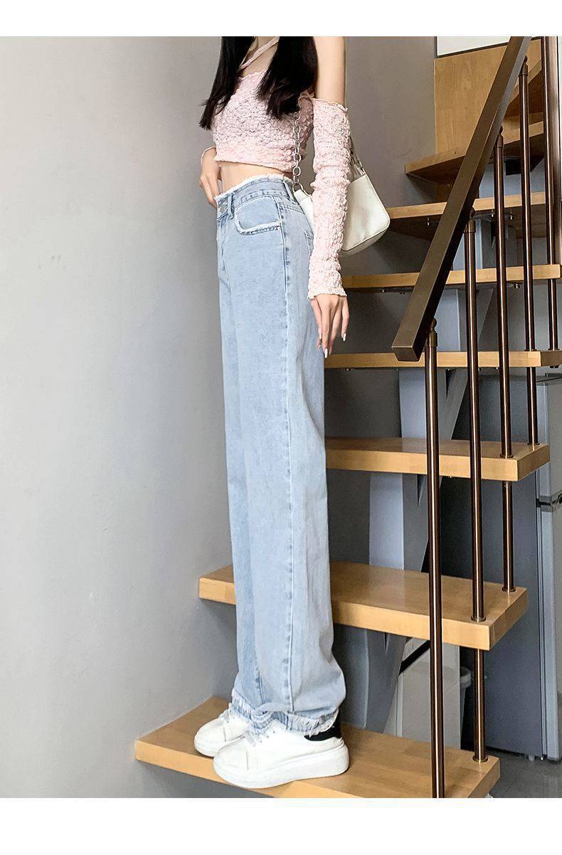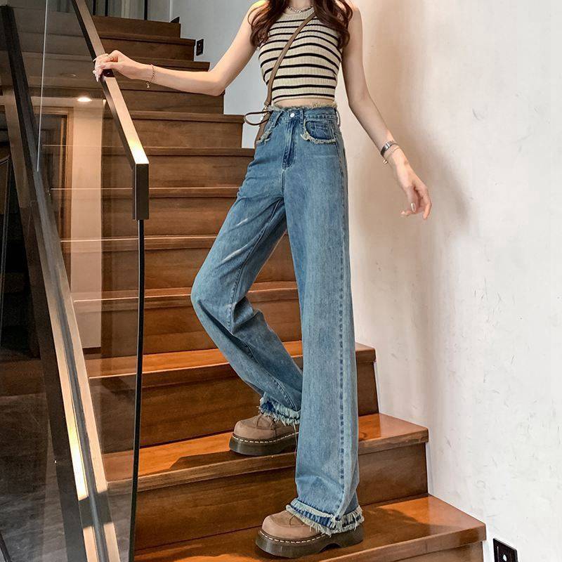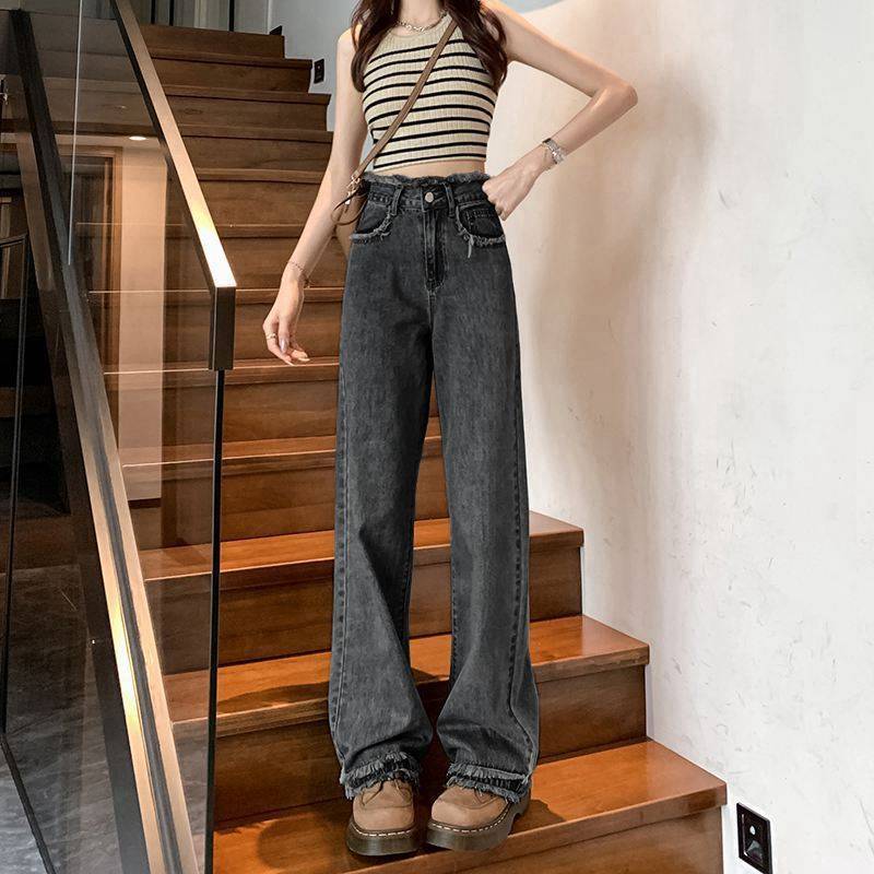 Широкие джинсы для женщин, лето 2025, новые брюки-грушевидной формы, закрывающие тело, американские ретро-брюки с высокой талией и длиной до пола