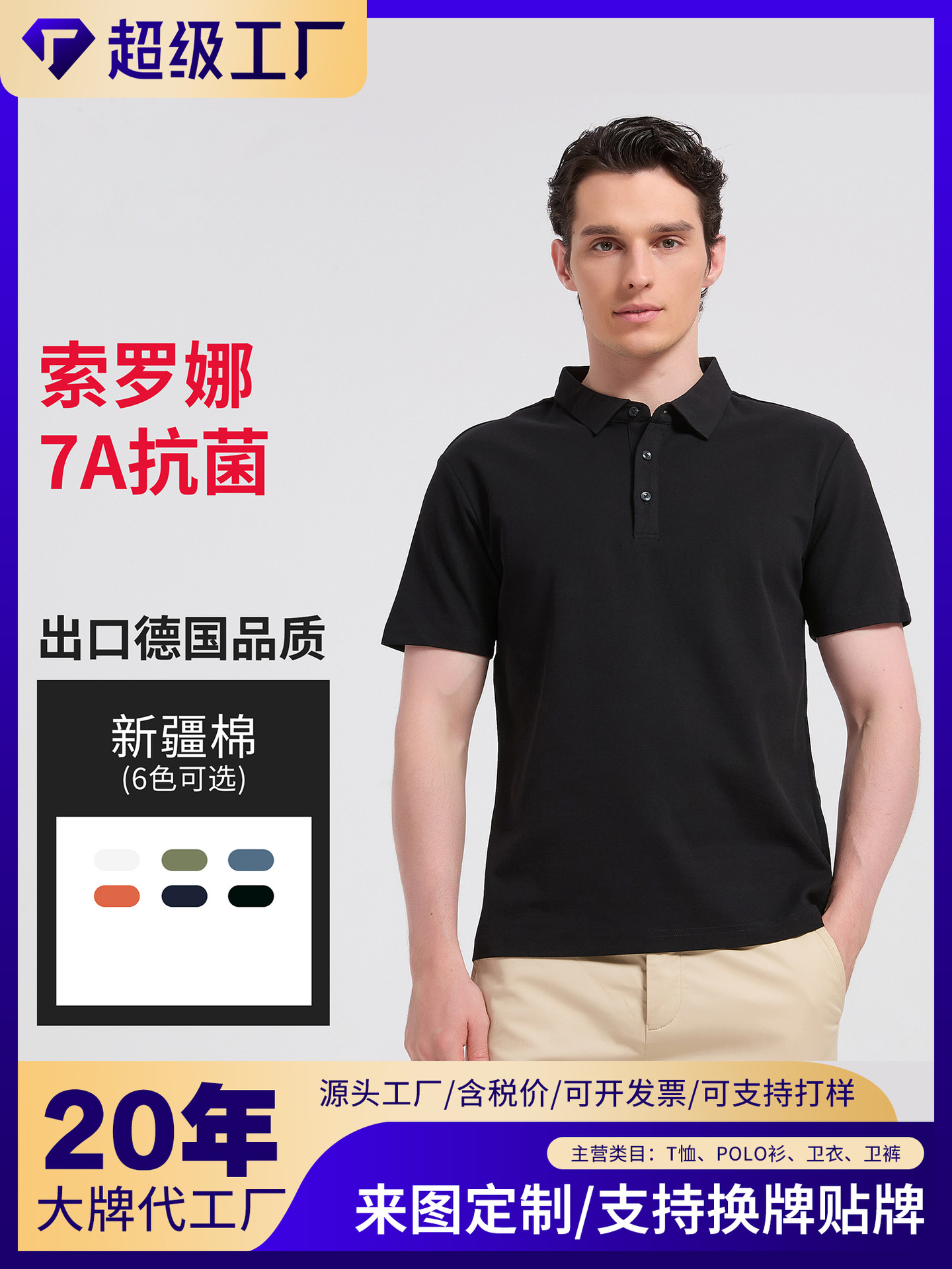Китайско-немецкая рубашка-поло BYB8222 Solona — летняя высококачественная легкая роскошная 7А антибактериальная рубашка-поло с отложным воротником, однотонная повседневная мужская рубашка-поло.