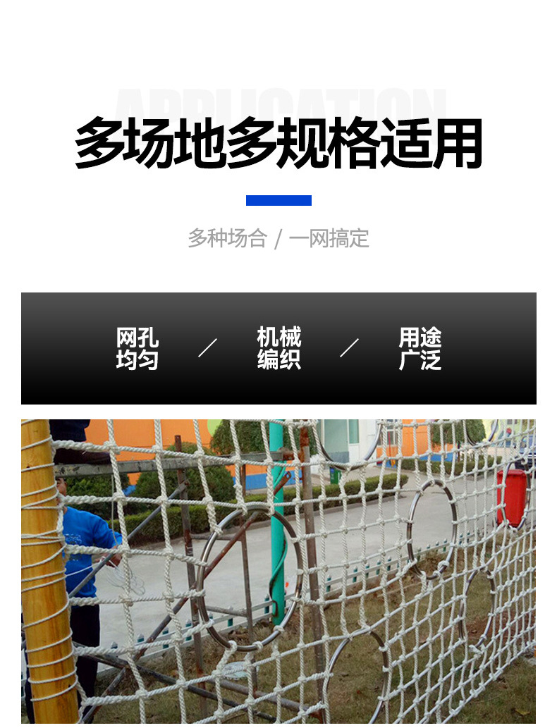 Заборы живописных территорий, защита подвесных мостов, лестницы и балконы, развлечения по скалолазанию и т. д.