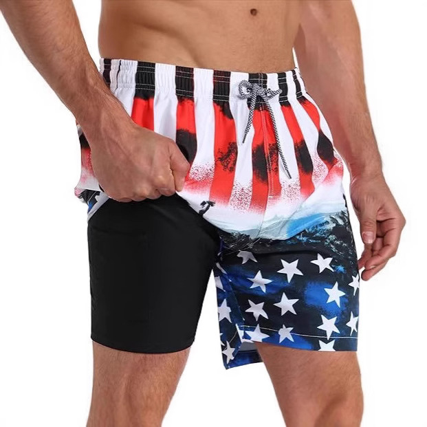 Специальная оптовая продажа Amazon, европейские и американские трансграничные 3D-цифровая печать, европейские и американские мужские двухслойные пляжные брюки, шорты 265