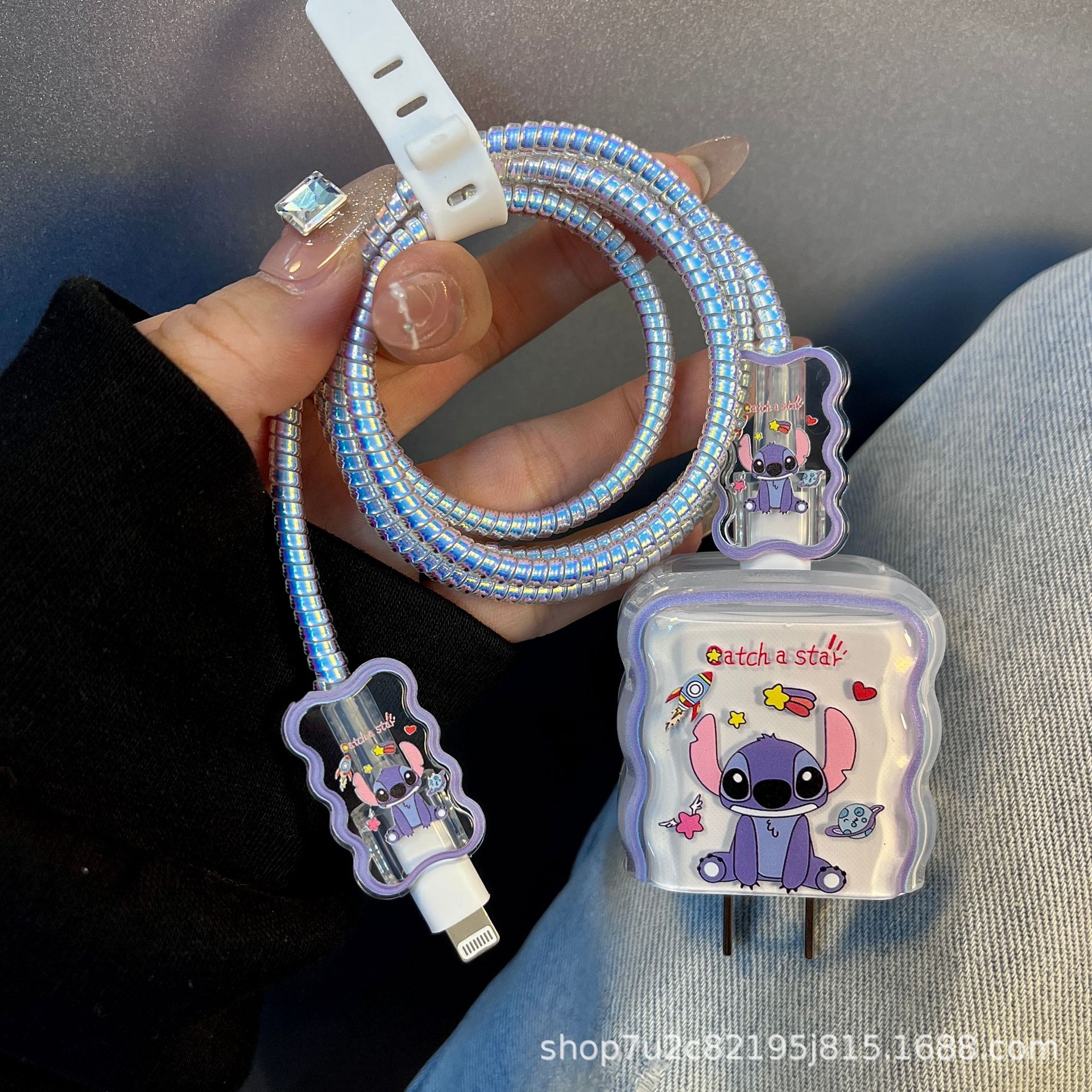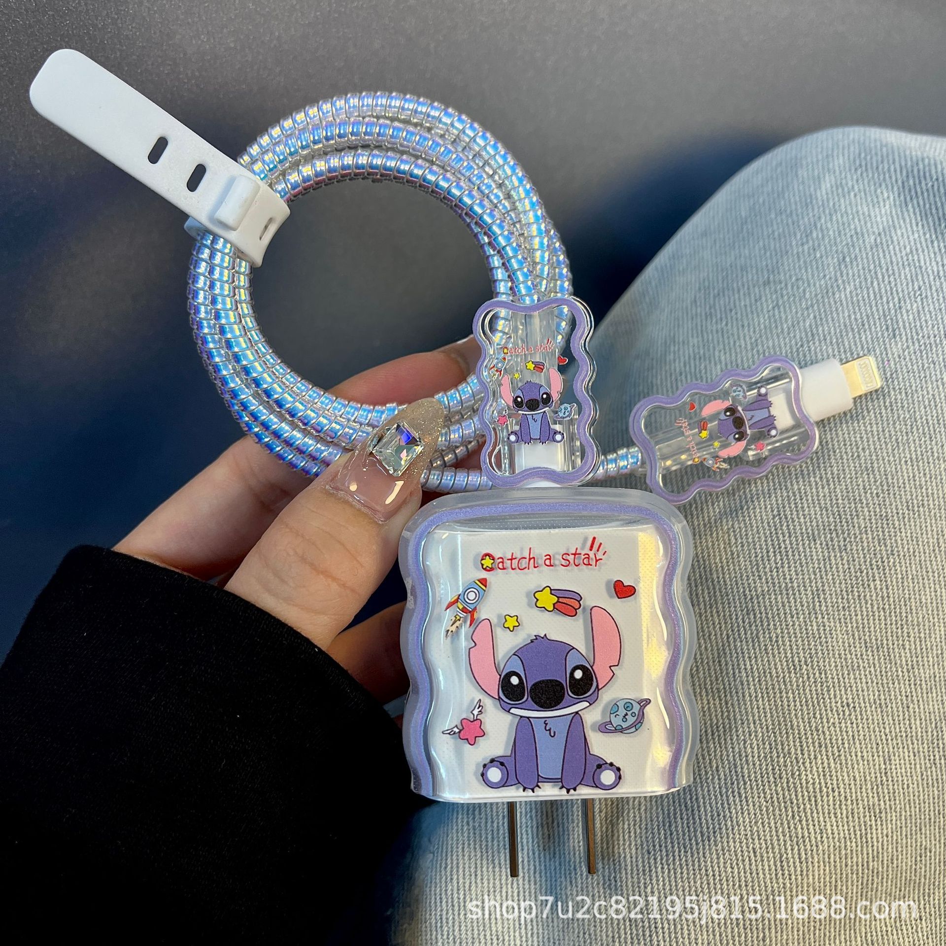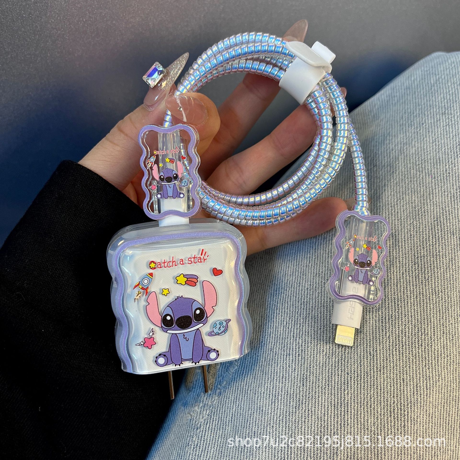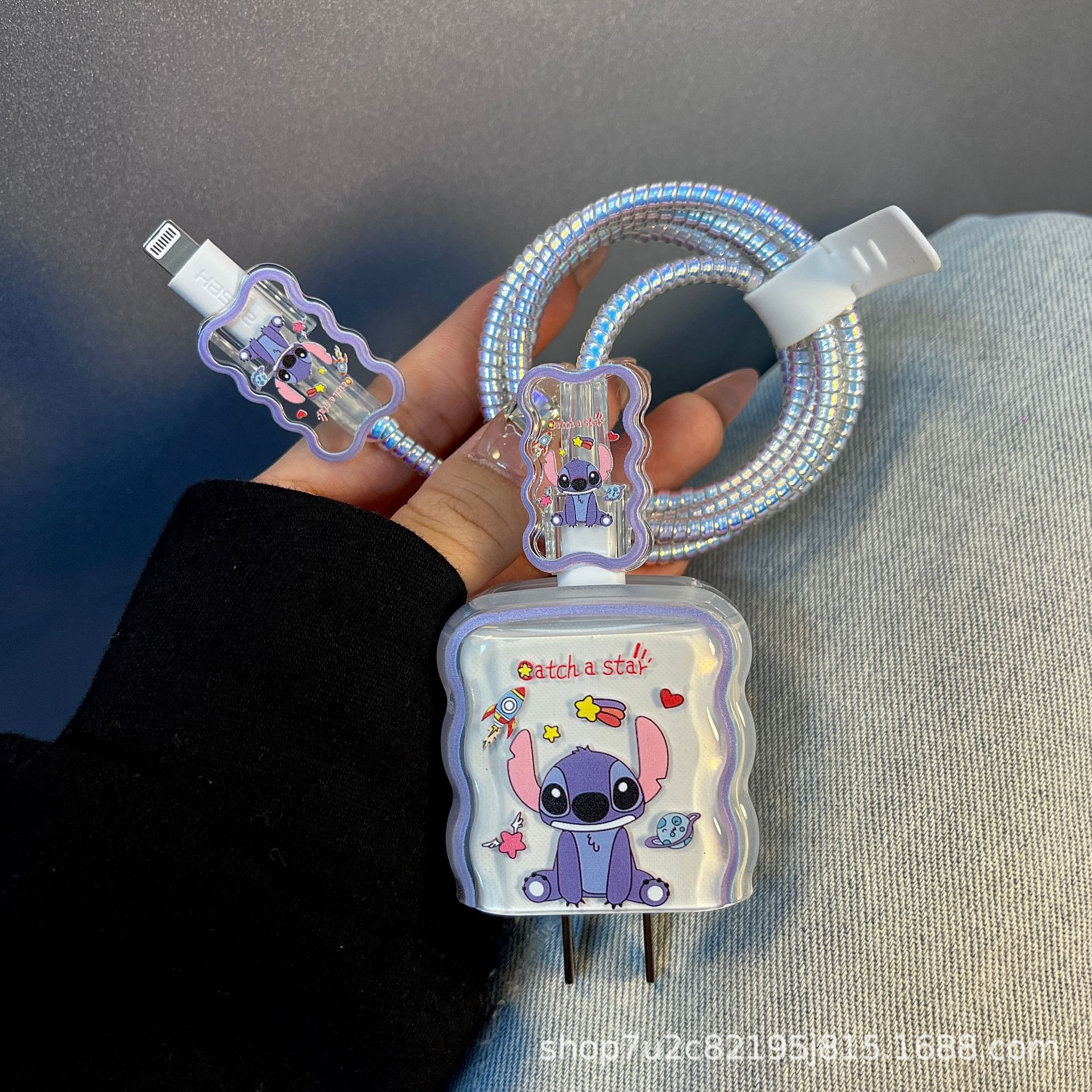 Чехол для зарядного устройства Apple 16, 20 Вт, с защитой от повреждений, с изображением Стича из мультфильма