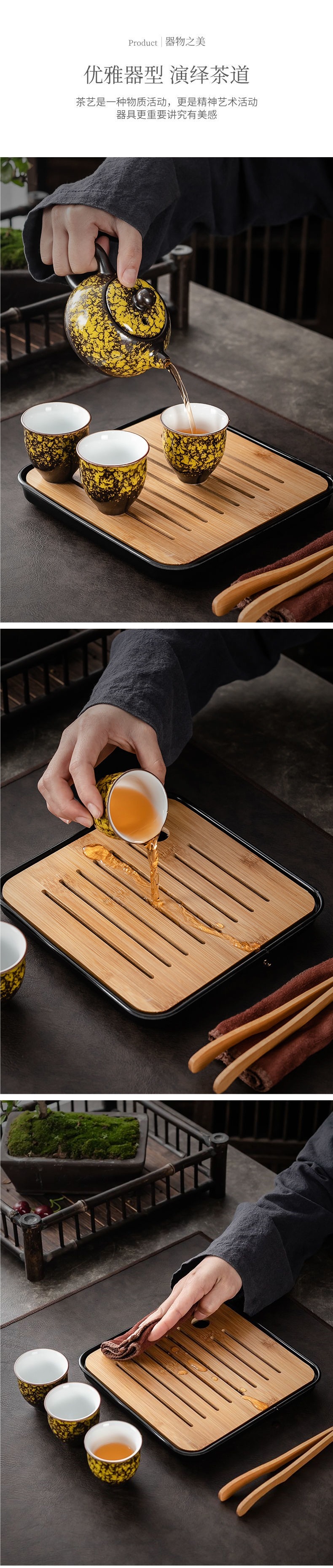(Одиночный чайный сервиз) без подноса для чая - чайное полотенце и зажим для чая; В комплект входит небольшой квадратный поднос для чая + чайное полотенце и зажим для чая.